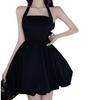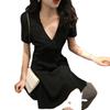 2024 Nuevo Verano Vestidito Negro Ajustado Escote en V Bajo Sexy Francés Cintura Entallada Vestido para Mujer