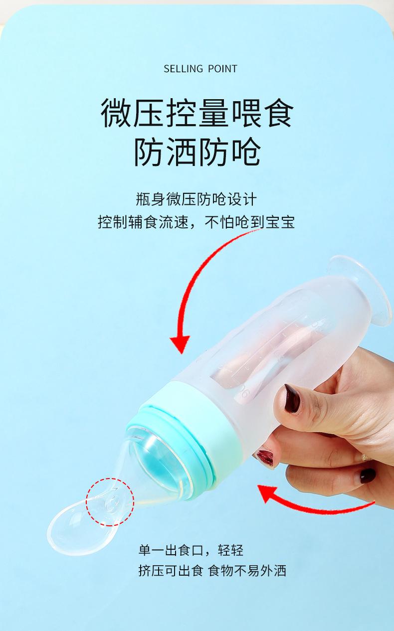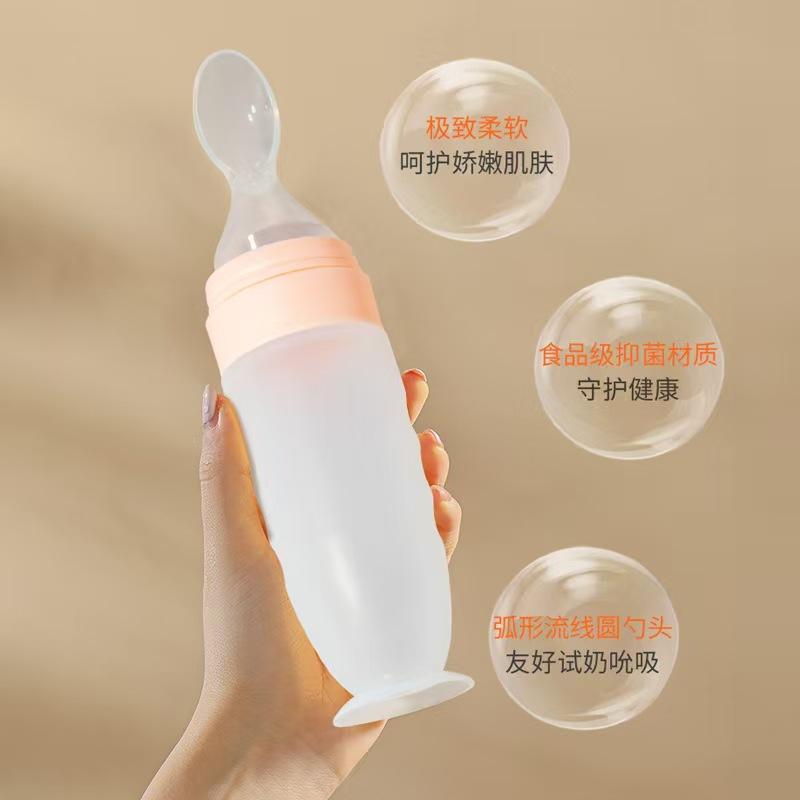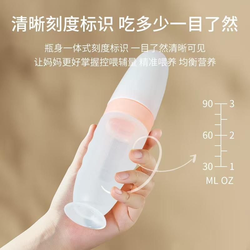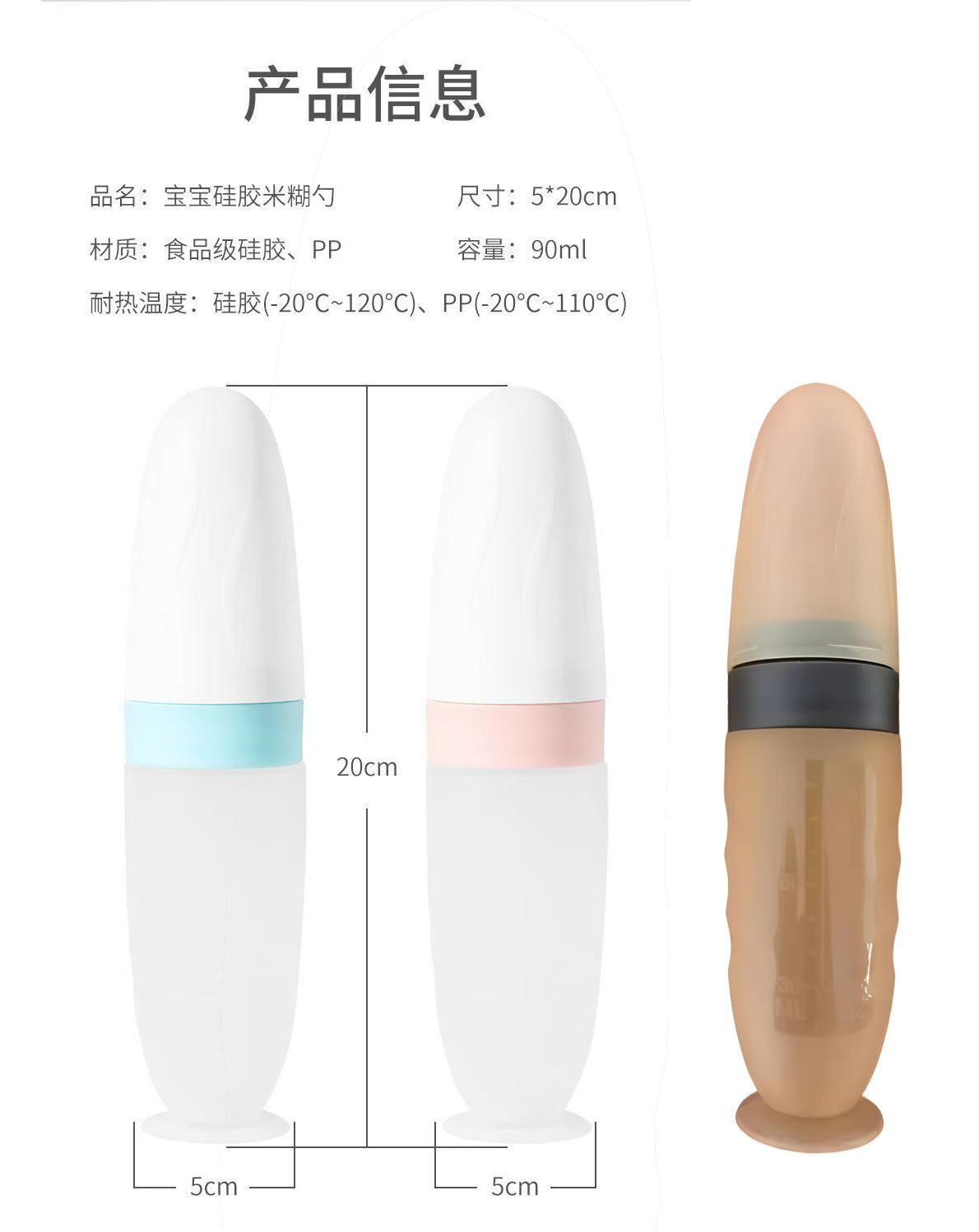 Suplemento alimenticio para bebés botella de arroz botella de leche cuchara de alimentación exprimible cuchara suave de silicona con ventosa herramienta suplementaria para alimentos de bebé