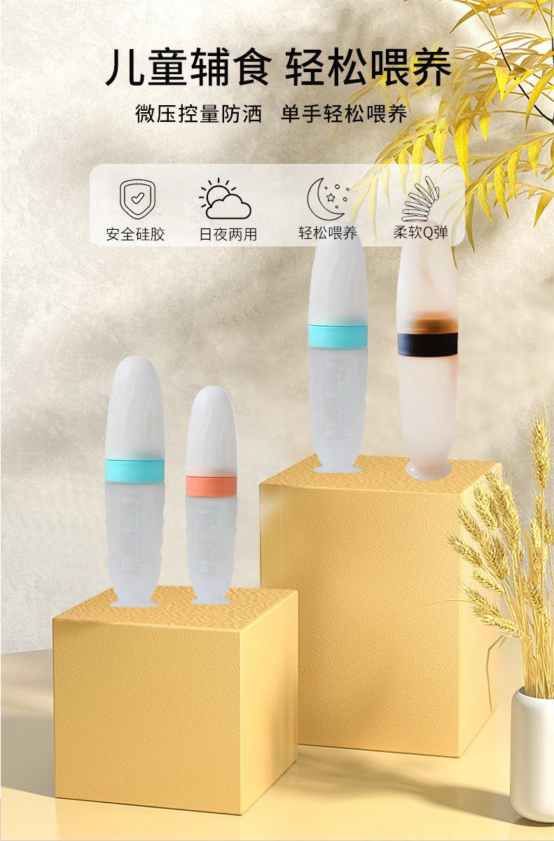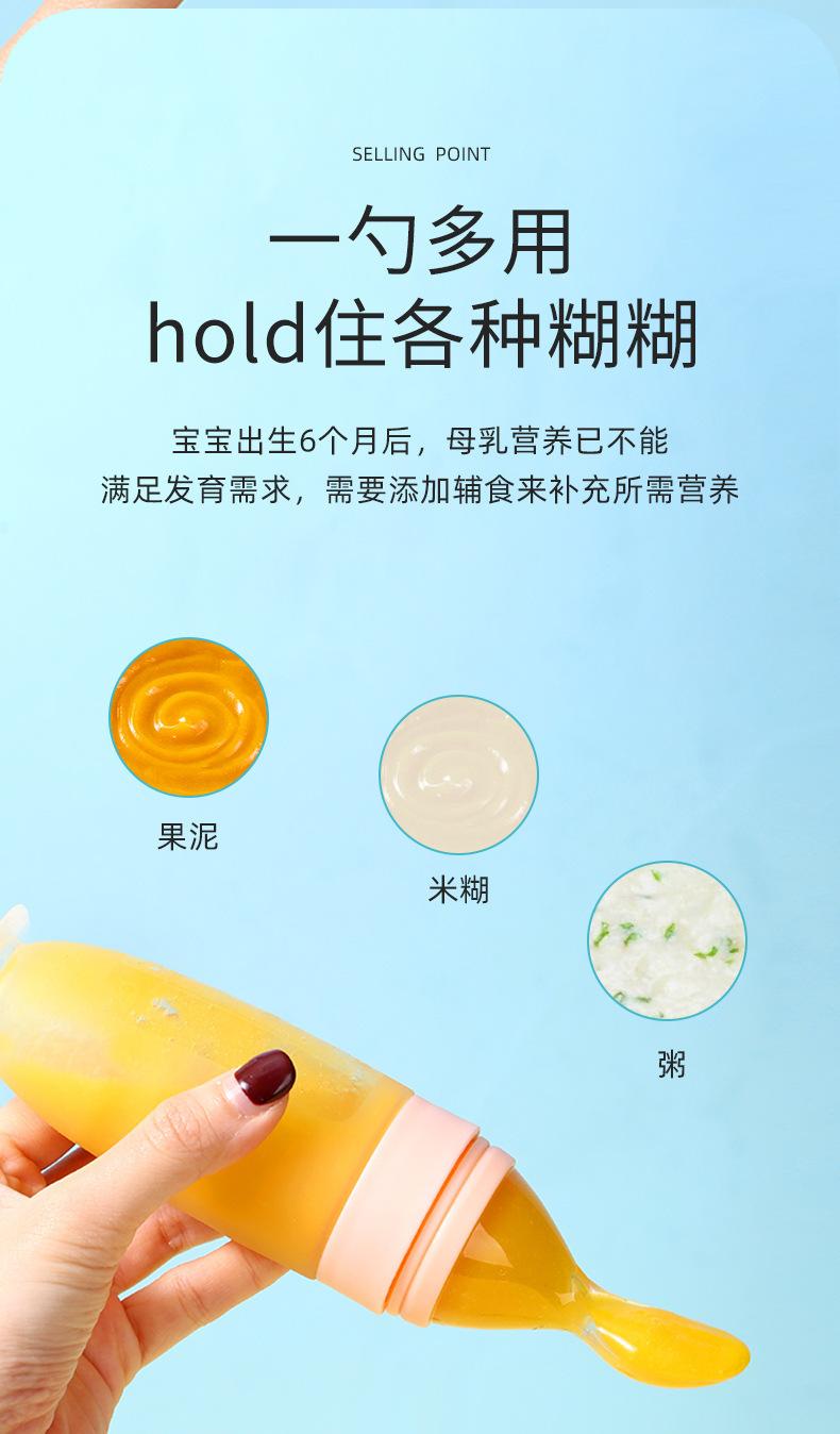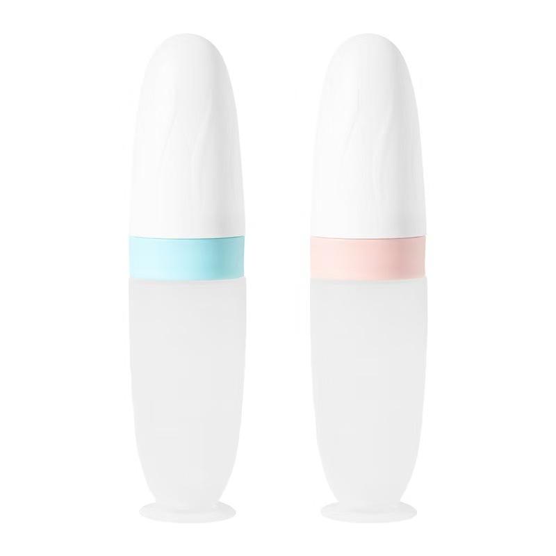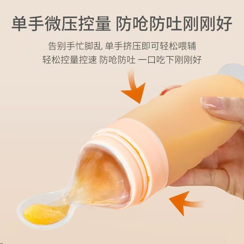 Suplemento alimenticio para bebés botella de arroz botella de leche cuchara de alimentación exprimible cuchara suave de silicona con ventosa herramienta suplementaria para alimentos de bebé