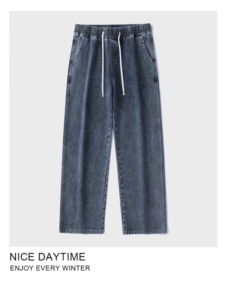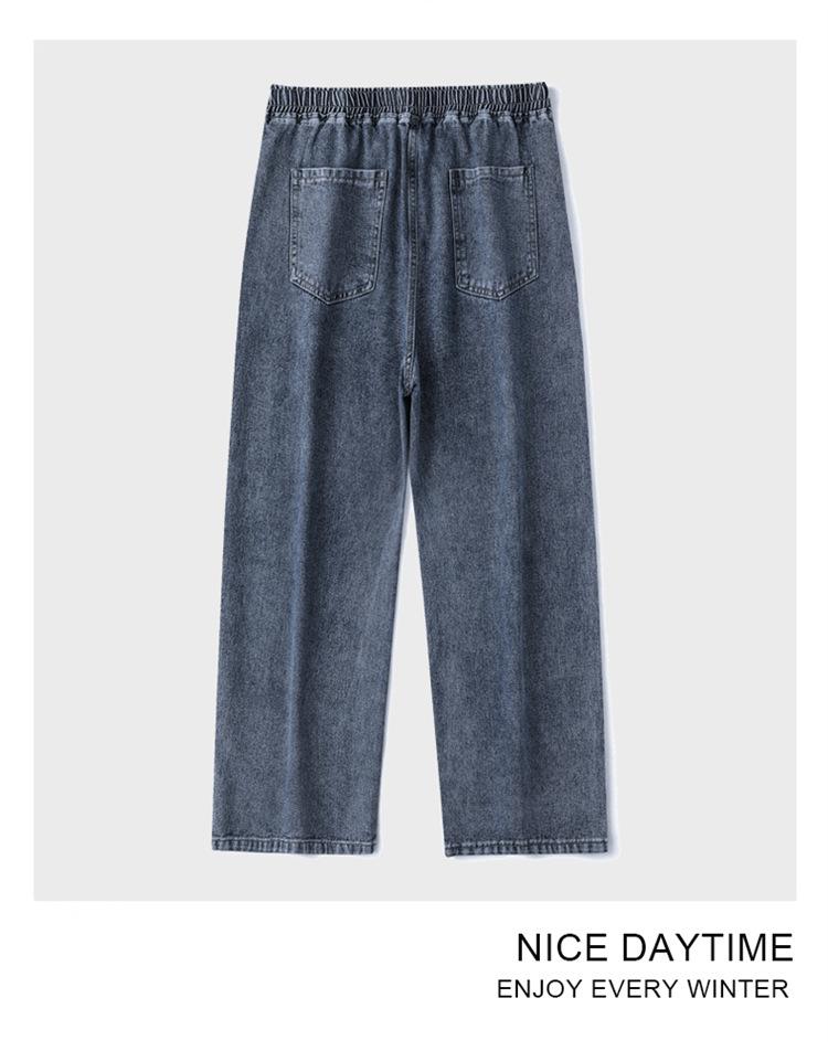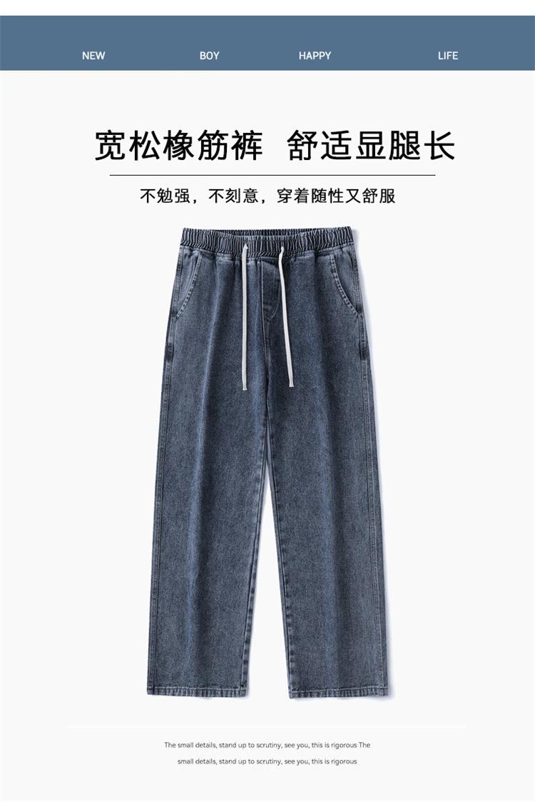 Otoño 2023 Nuevos Jeans de Hombre Cintura Elástica Pantalones de Goma Rectos Sueltos Combinan con Todo Modernos Lavados Pantalones Largos