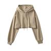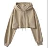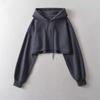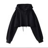 Sudadera de otoño estilo americano con capucha y cordón para mujer, diseño holgado que realza la cintura, mangas cortas y largas