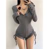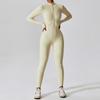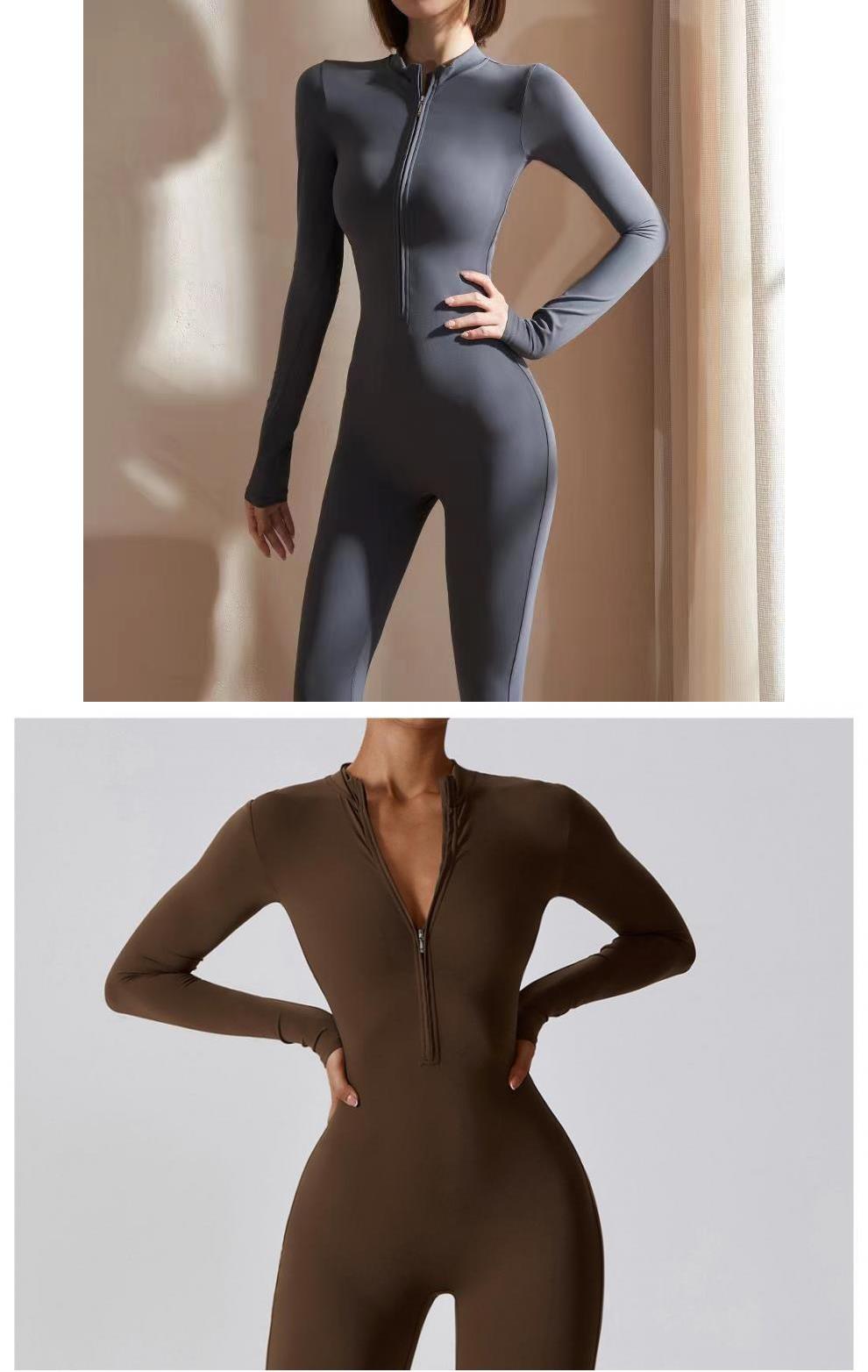 Otoño Nuevo Manga Larga Cremallera Ajustado Cadera Mono Pantalones de Fitness Ropa Deportiva para Correr Entrenamiento Yoga para Mujer Negro