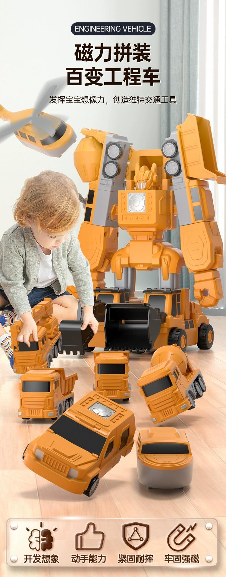 #Variety of magnetic assembled engineering vehicles [8-piece set/integrated robot]*, #Variety of magnetic asse...