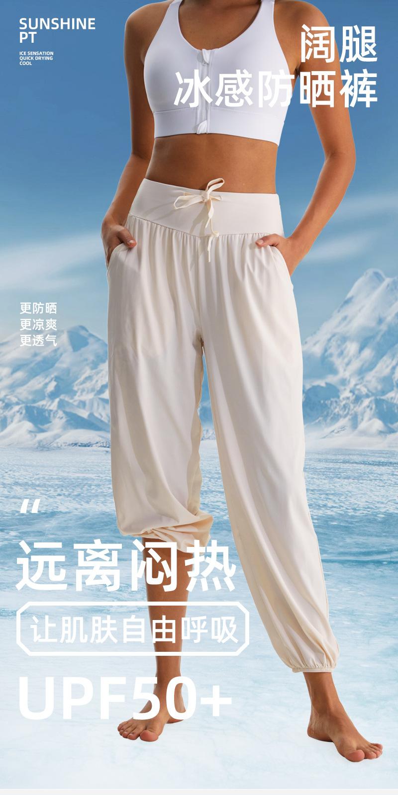 Pantalones de Pierna Ancha para Protección Solar de Verano 5A Antibacterianos Pantalones de Yoga de Secado Rápido Adelgazantes Jogger Pantalones Deportivos de Fitness para Mujer Alta Elasticidad