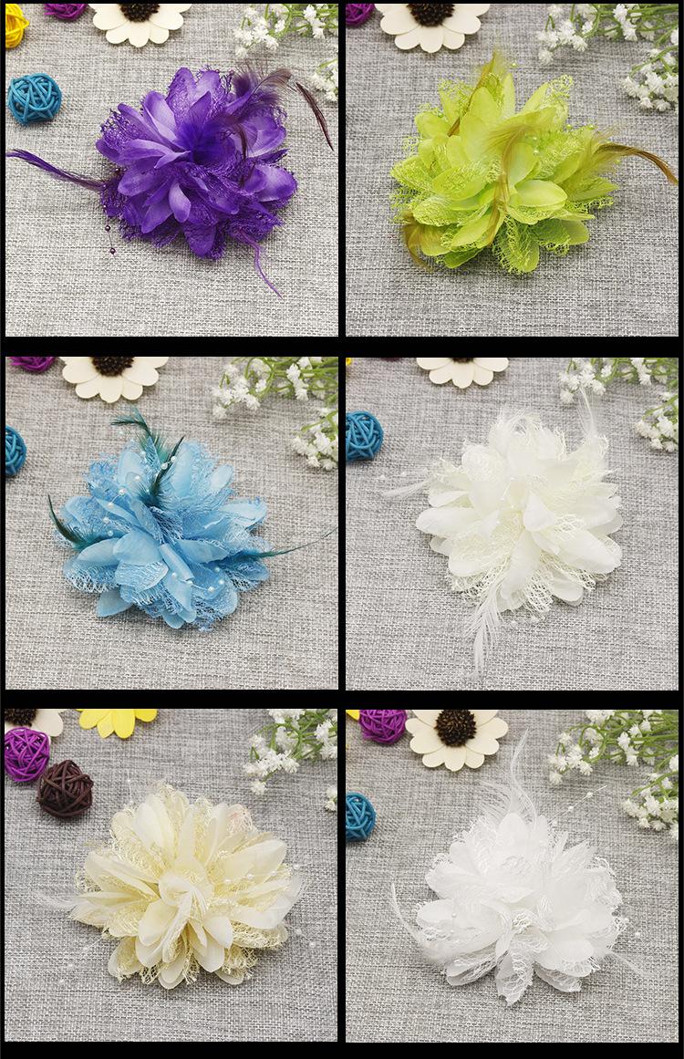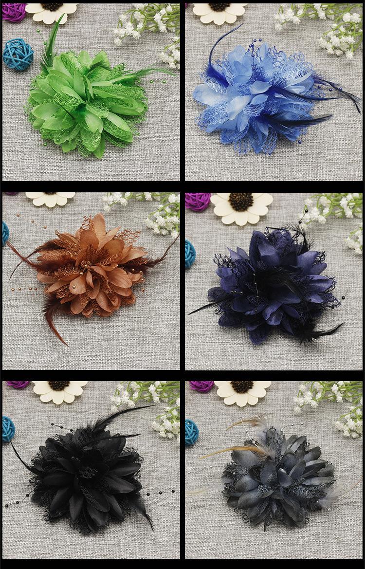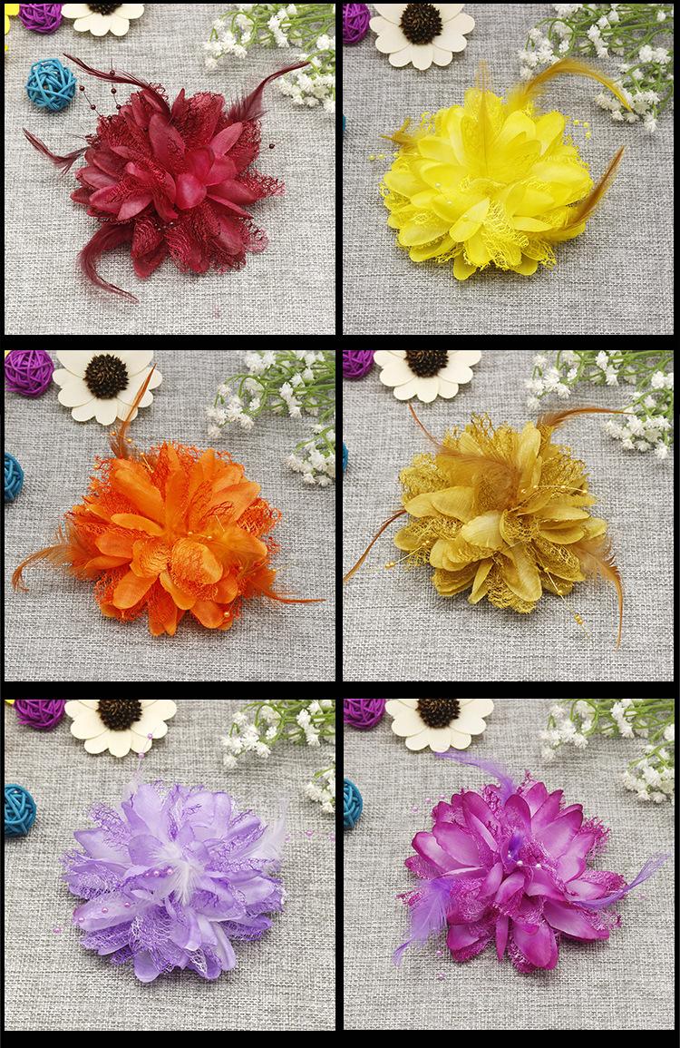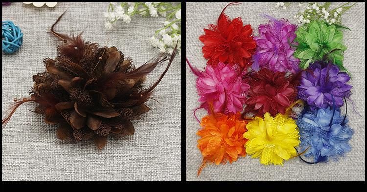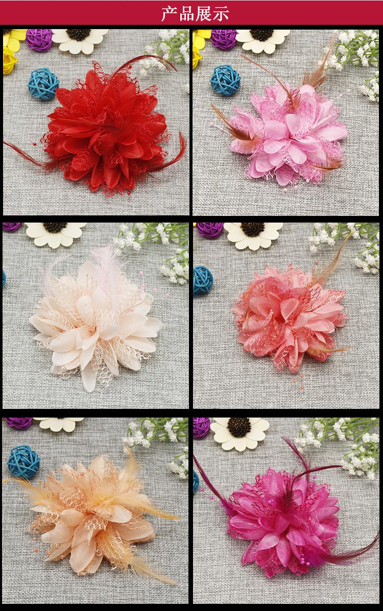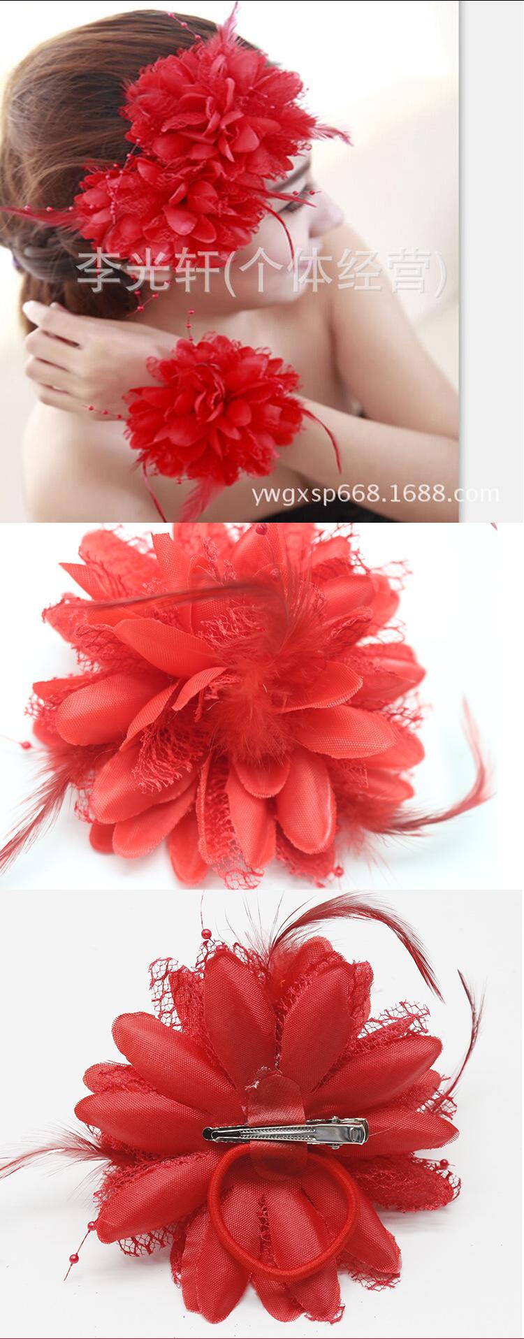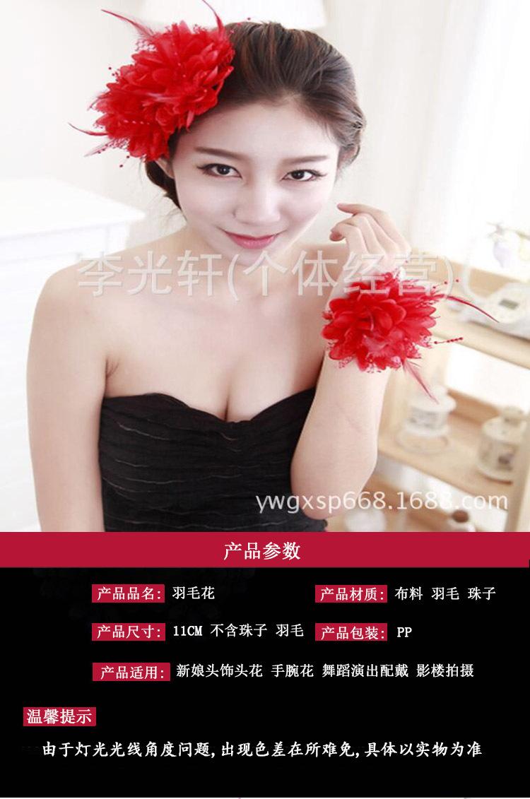 Tocado de novia directo de fábrica tocado de plumas ramillete de flores actuación infantil con flores rojas