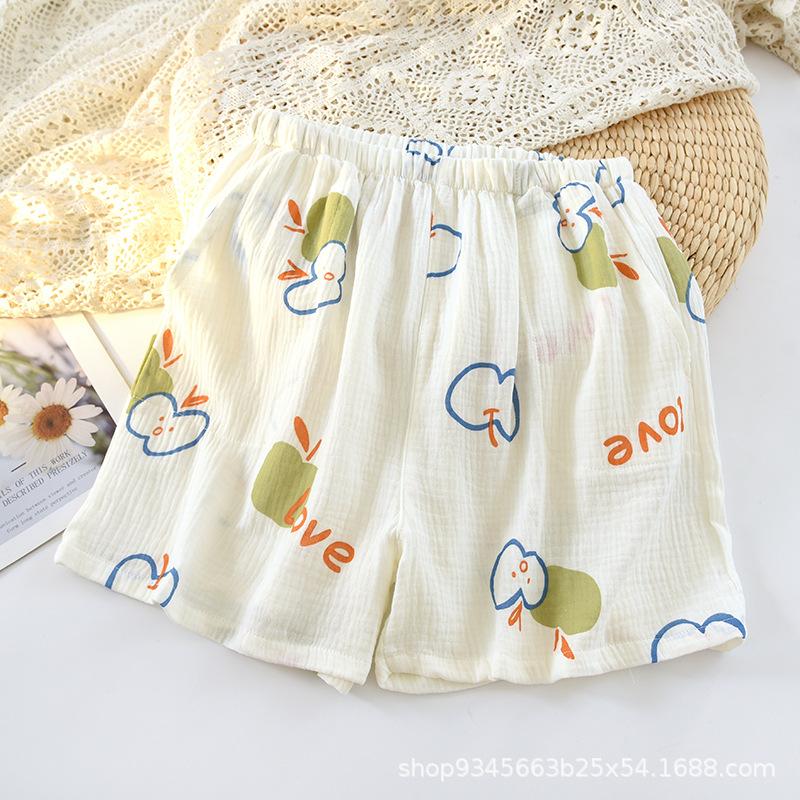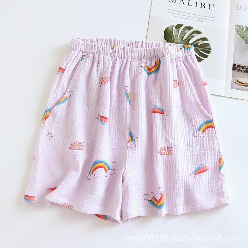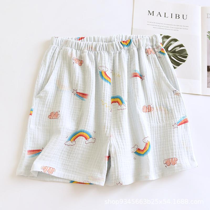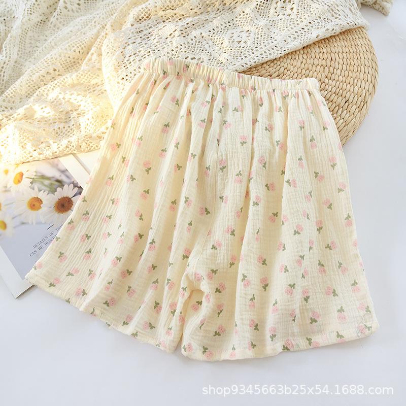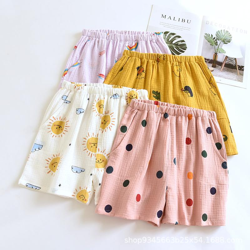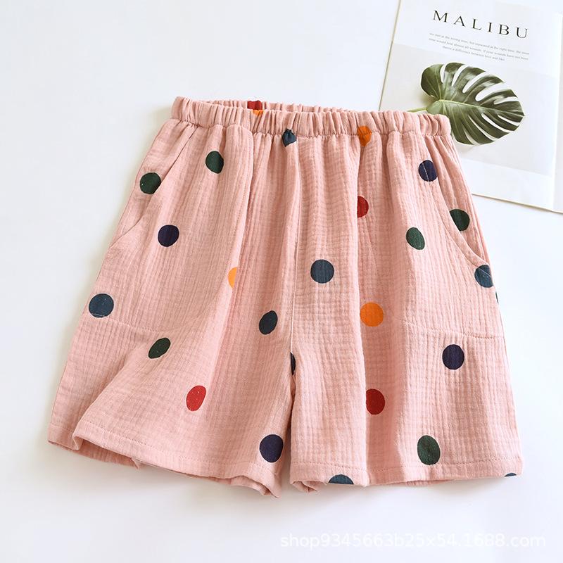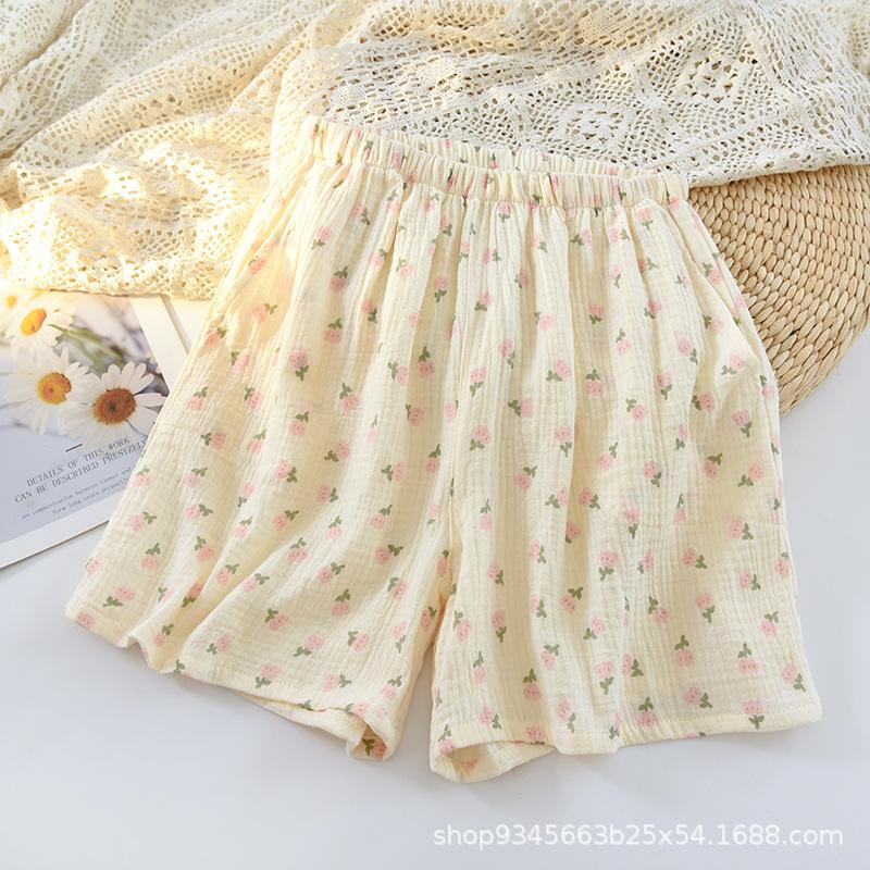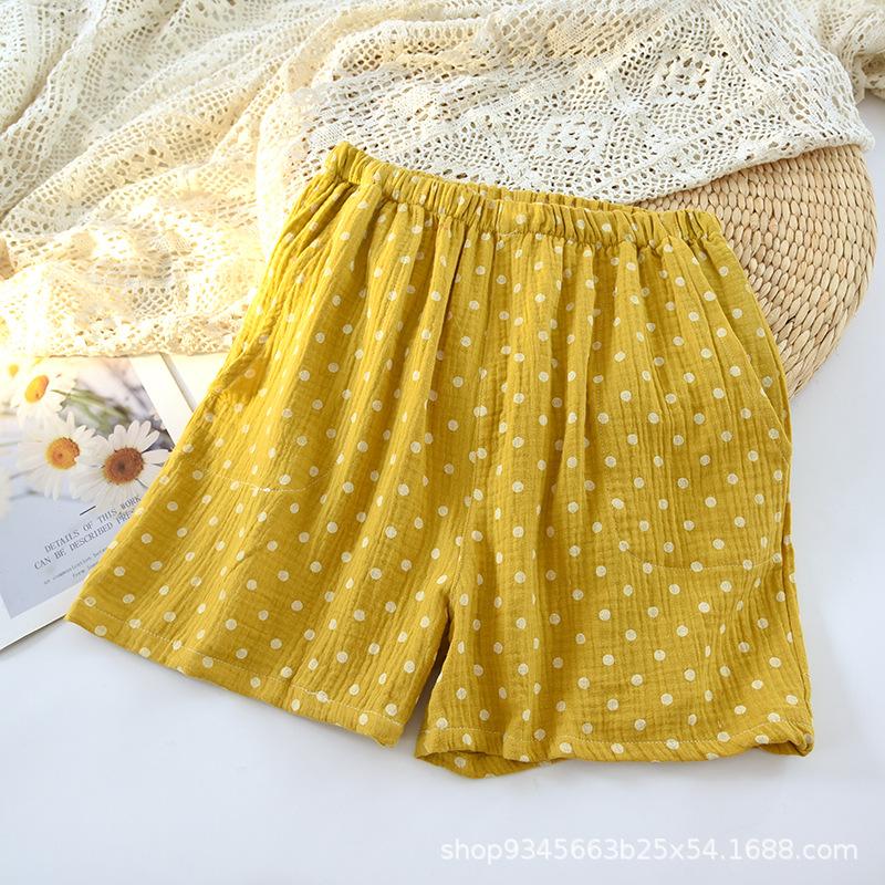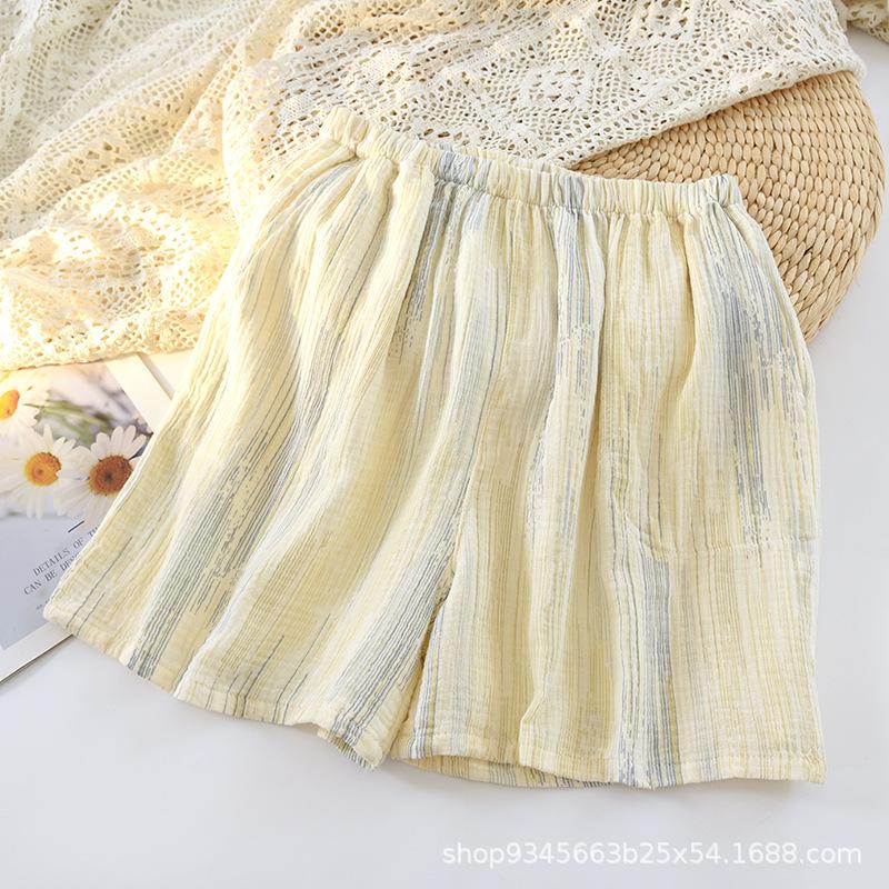 Pantalones de Pijama Shorts de Verano para Mujer Crepé de Algodón Puro Delgados Casuales Se Pueden Usar Afuera Gasa Suelta Algodón Puro Una Pieza Pantalones para el Hogar