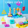 Montessori forma geométrica cinco columnas empalme coincidencia bloques de construcción juguete rompecabezas de madera conjunto columna educación temprana de los niños iluminación ayudas didácticas
