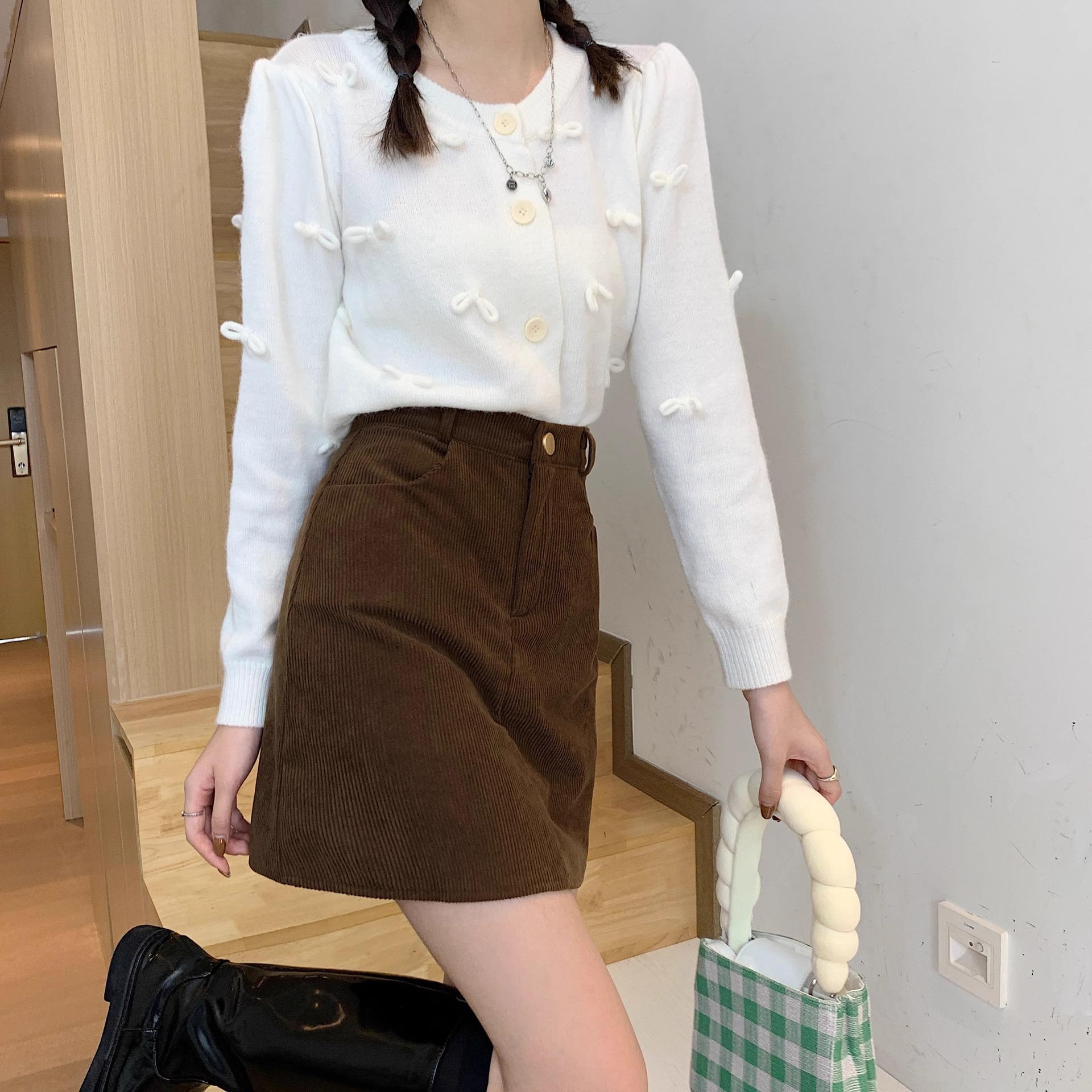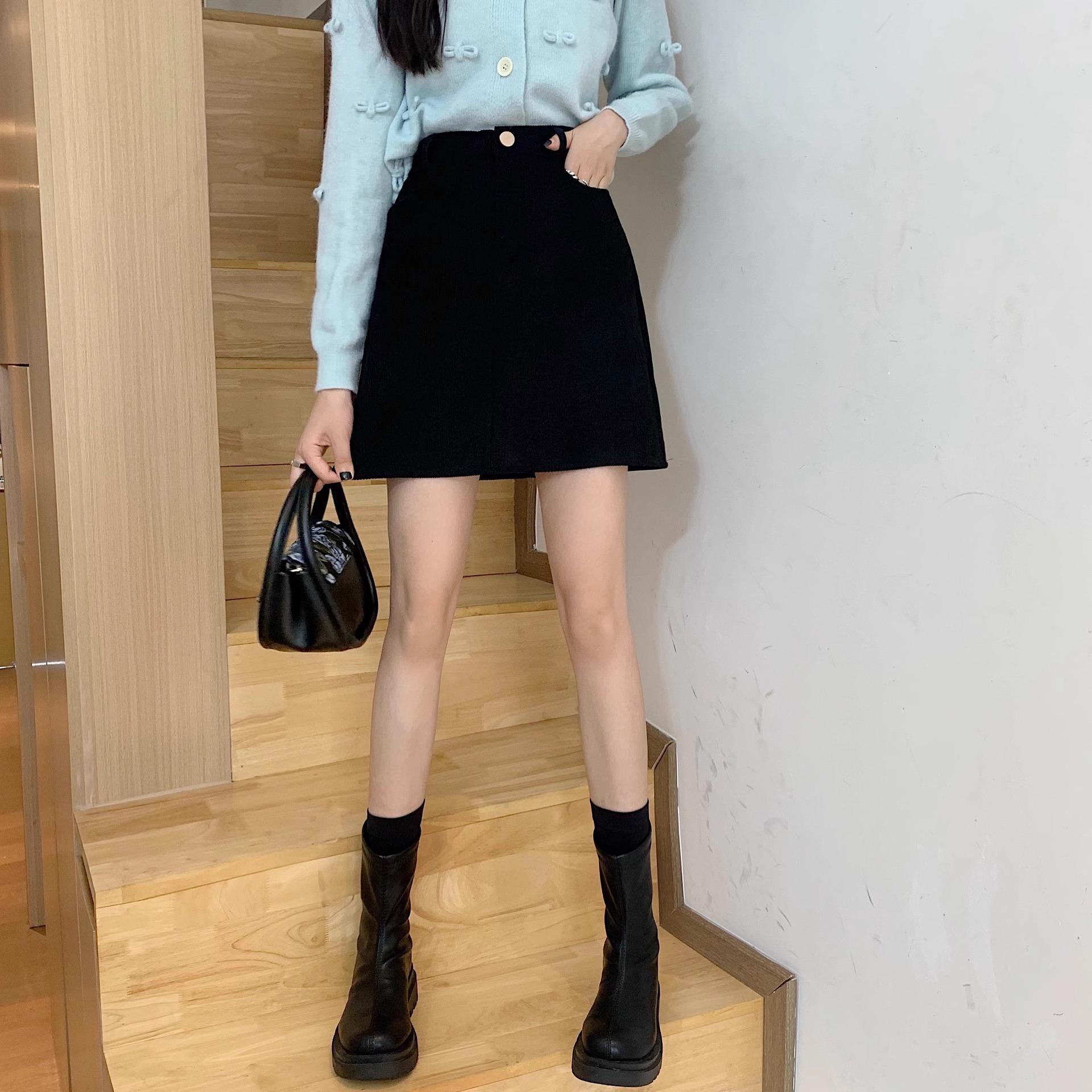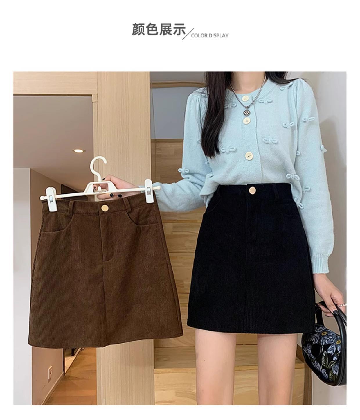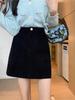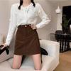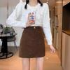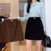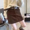 2025 Otoño e Invierno Nueva Falda Retro de Pana para Mujer Cintura Alta Adelgazante Anti-caderas Falda Coreana Línea A