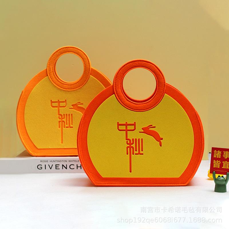 Bolsa de Fieltro Nueva de Mediados de Otoño Bolsa de Regalo para Pastel de Luna Lindo Conejo Bolsa de Fieltro Guofeng Bolso de Mano Logotipo Corporativo