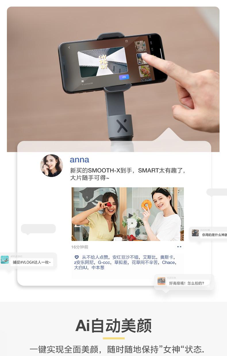 Zhyun Zhiyun Estabilizador de Mano Smooth X Smoothx Gimbal para Teléfono Móvil Palo Selfie Soporte para Transmisión en Vivo