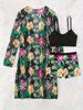 Amazon Nuevo Traje de Baño Sexy Ajustado Estampado Protector Solar de Alta Elasticidad para Mujer de Tres Piezas Dividido