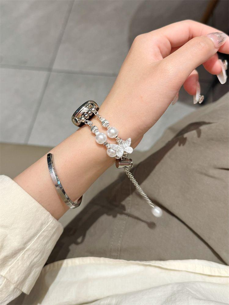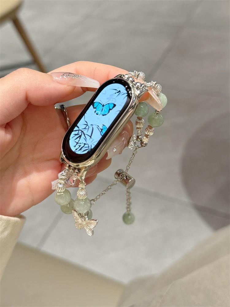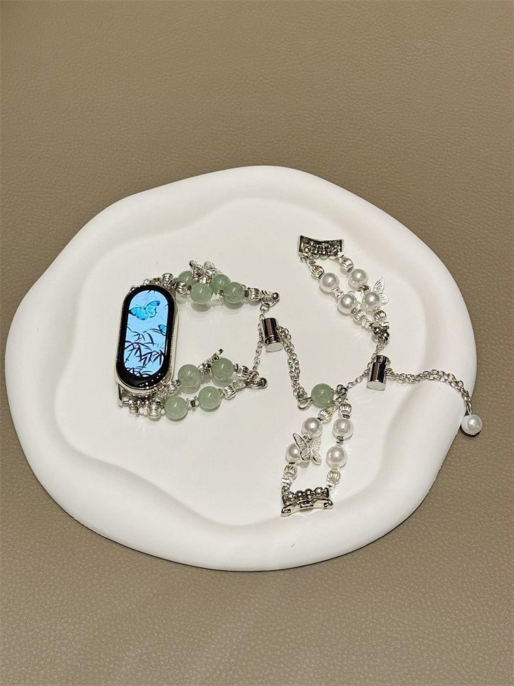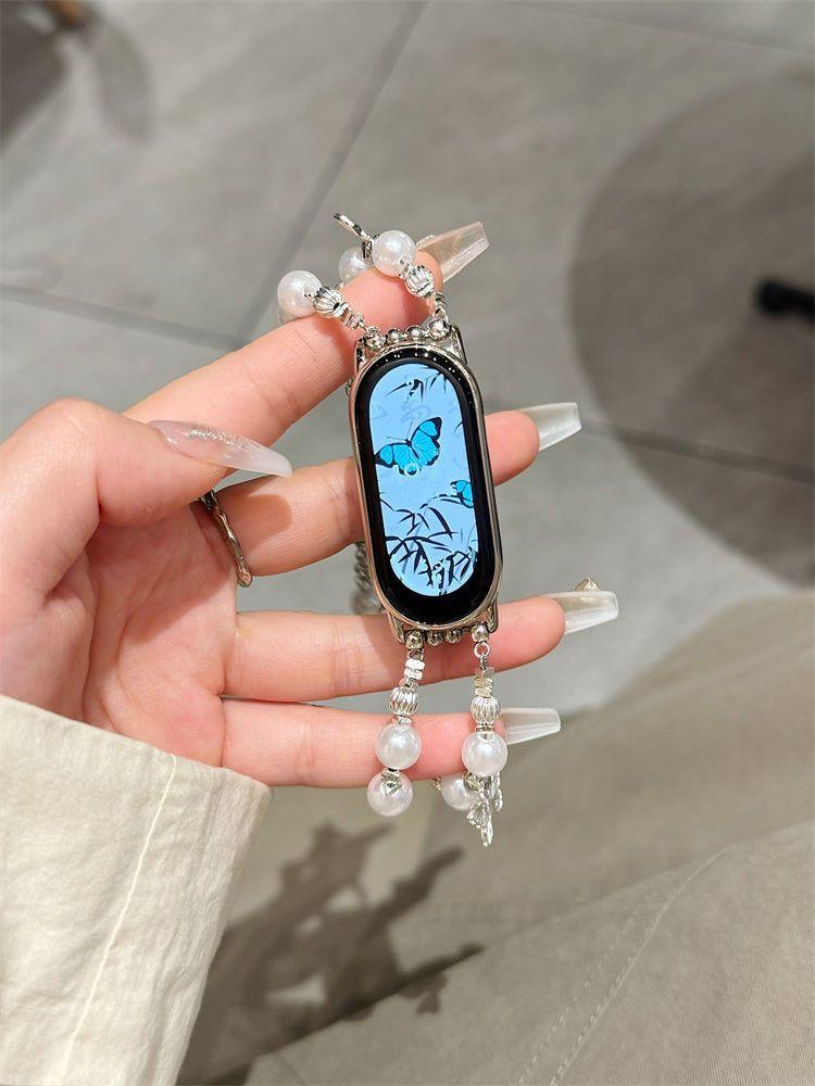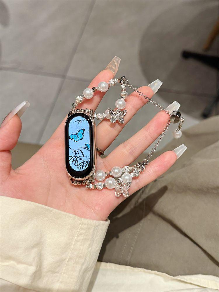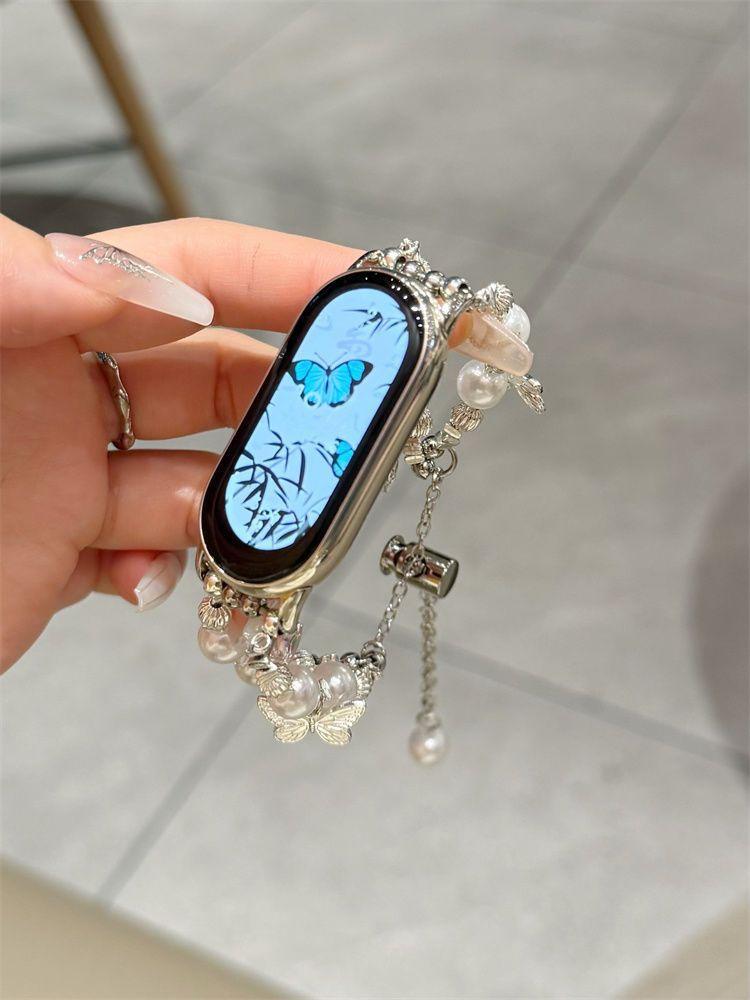 Adecuado para Xiaomi Mi Band 10 Correa Versión NFC Perla Plata Rota Pulsera Mariposa Verano 56789 Correa de Repuesto para Mujer