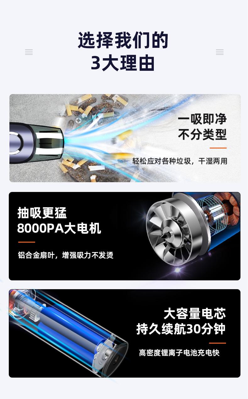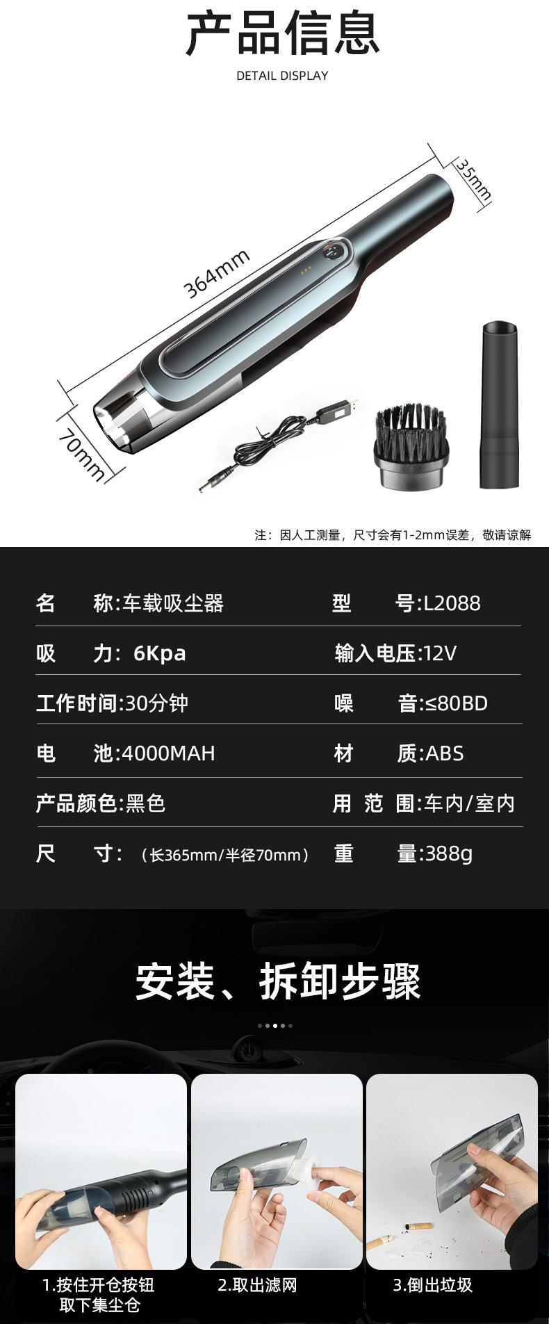 Características del producto: Modelo inalámbrico mejorado con motor potente real de 6000pa, ligero y conveniente, múltiples filtros, batería de gran capacidad, no solo se puede usar en el coche sino también en casa.
