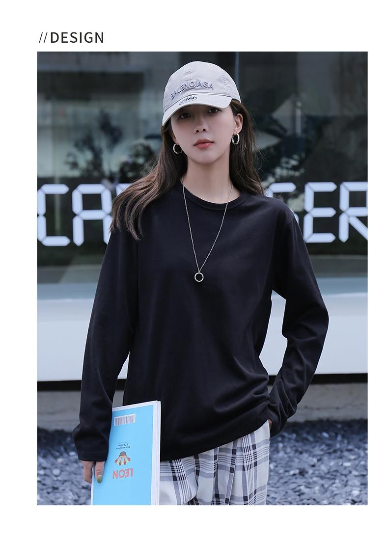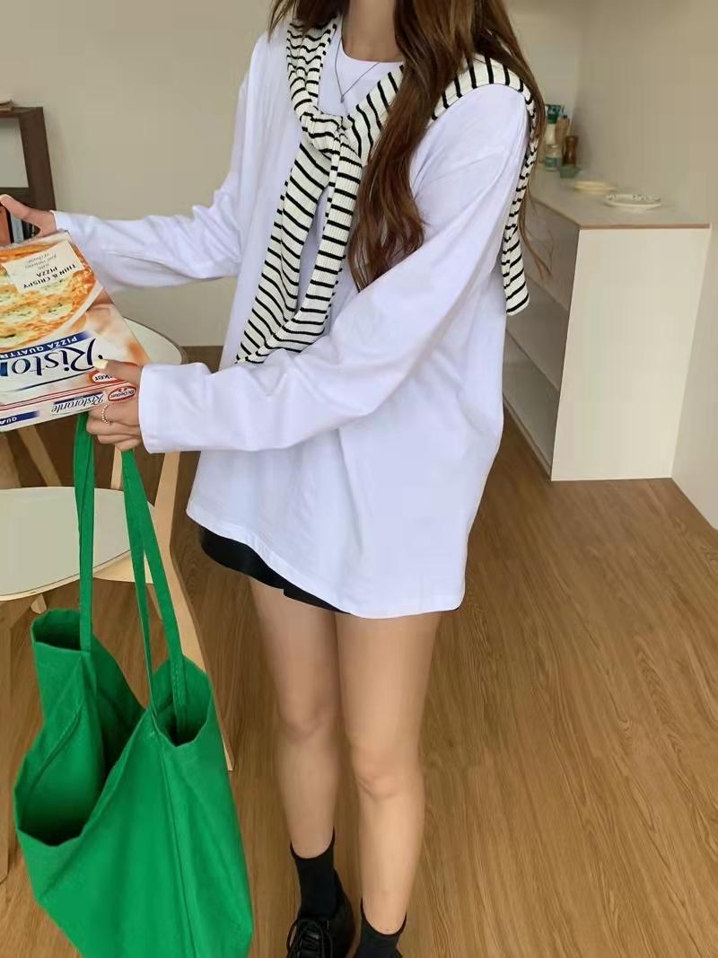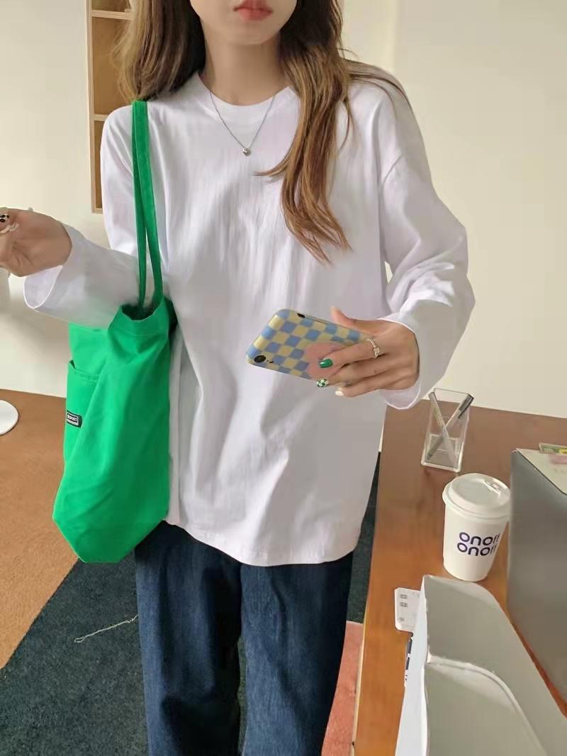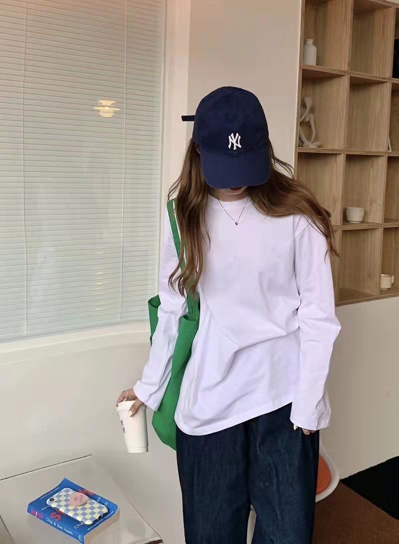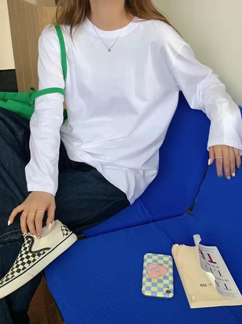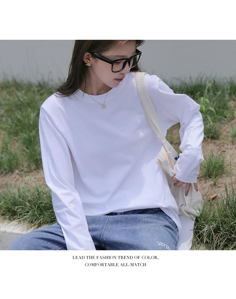 Playera holgada de manga larga de algodón simple de 250 g, suéter suelto con camiseta blanca de fondo para mujer, abrigo nuevo de otoño 2025