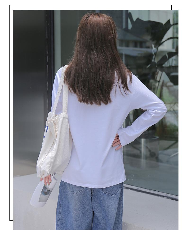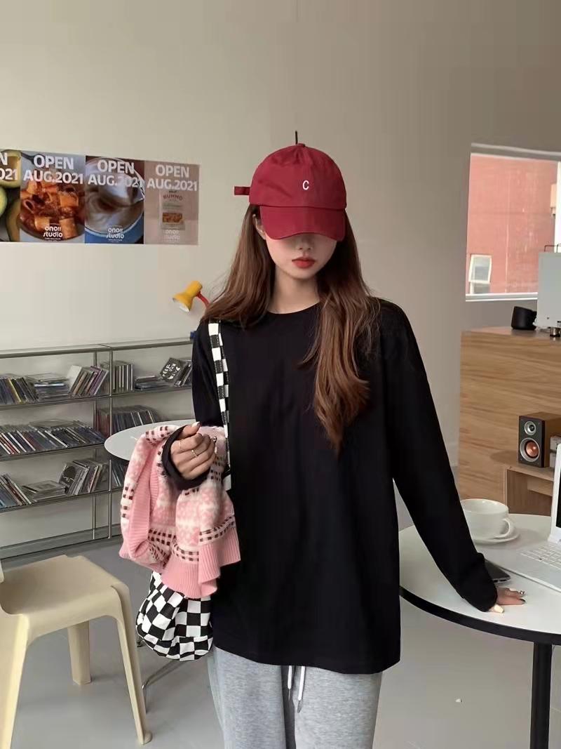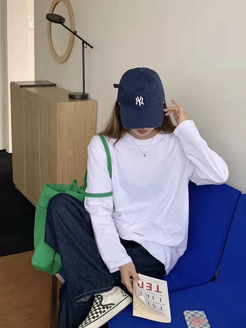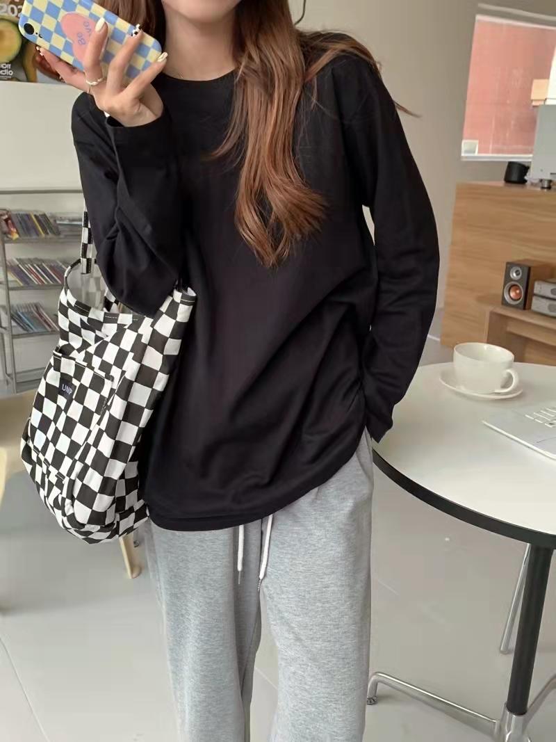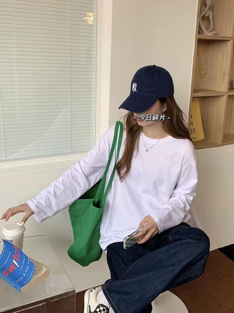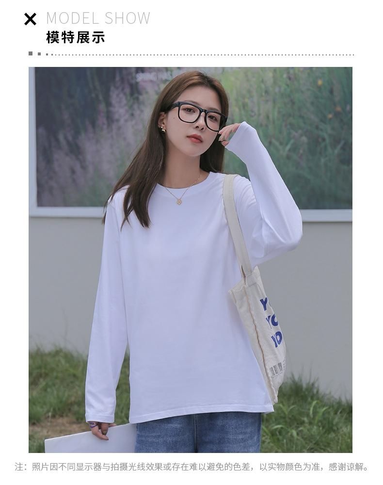 Playera holgada de manga larga de algodón simple de 250 g, suéter suelto con camiseta blanca de fondo para mujer, abrigo nuevo de otoño 2025