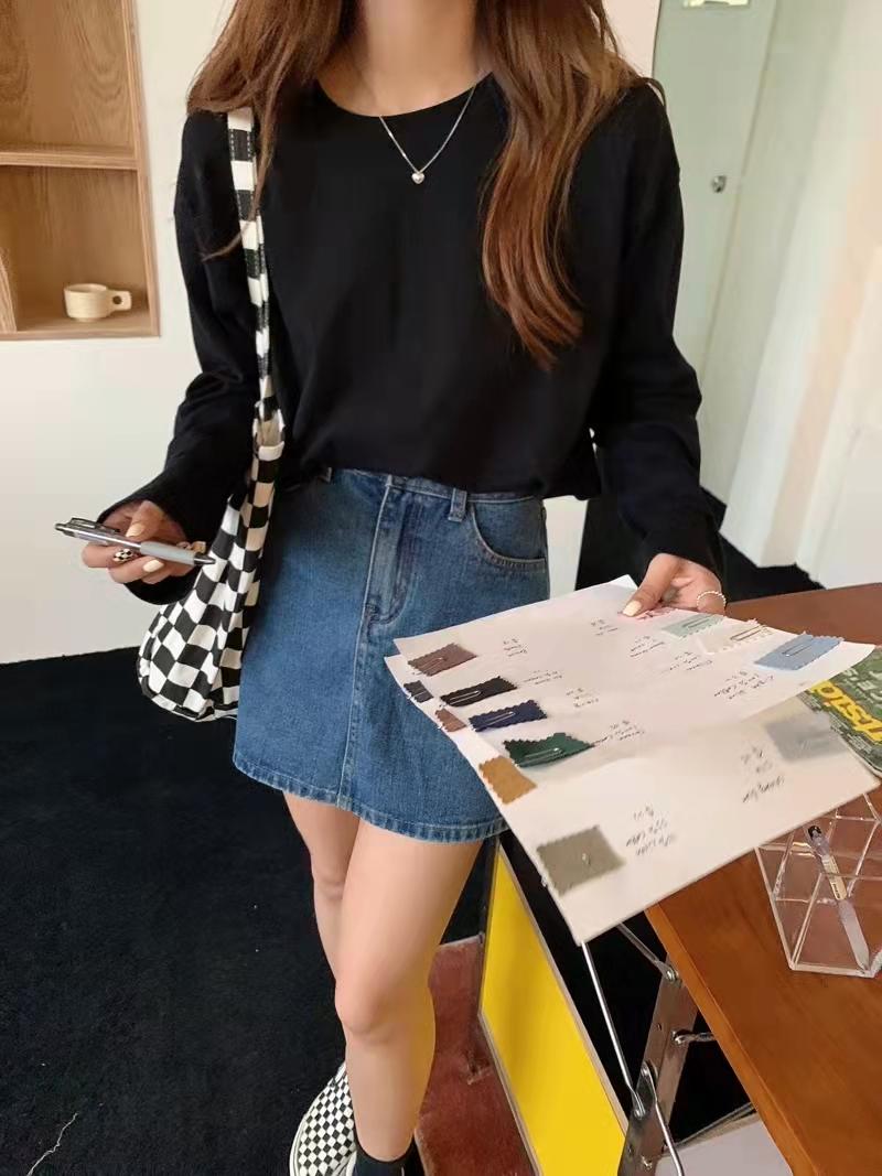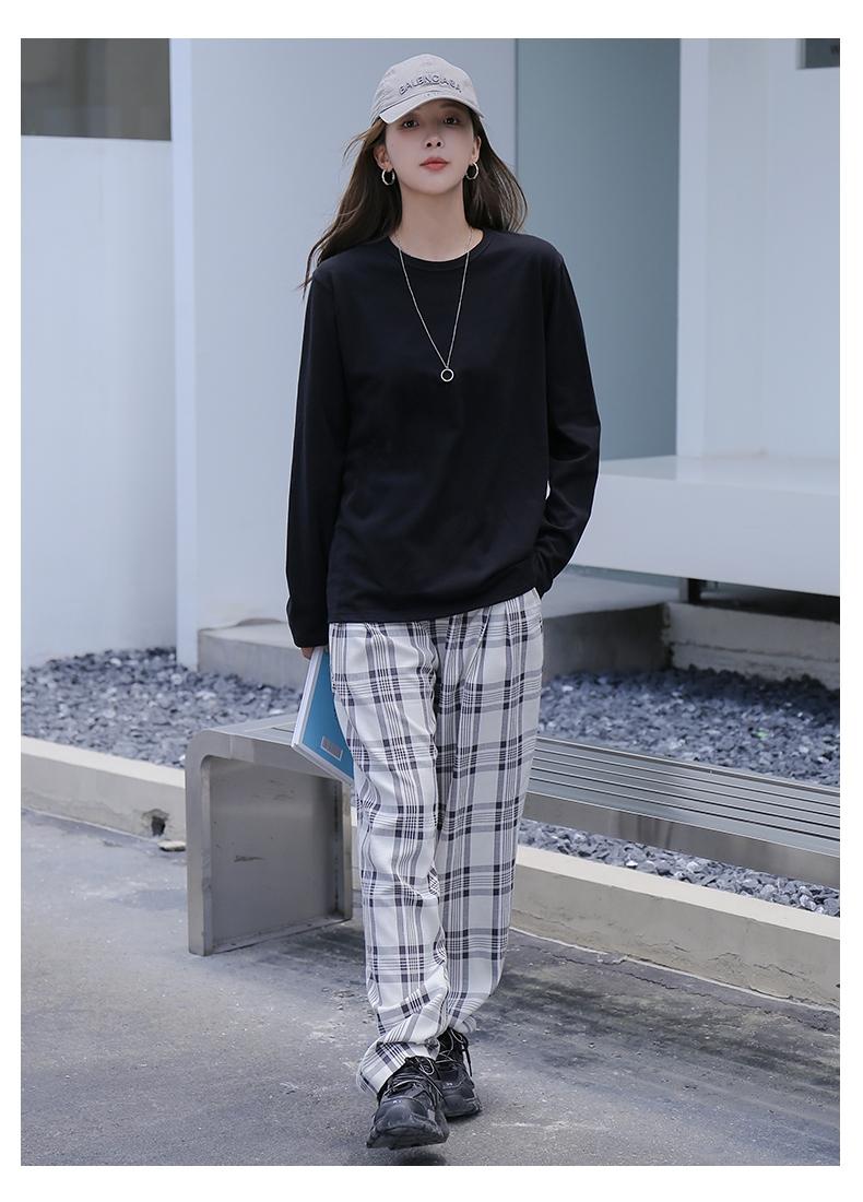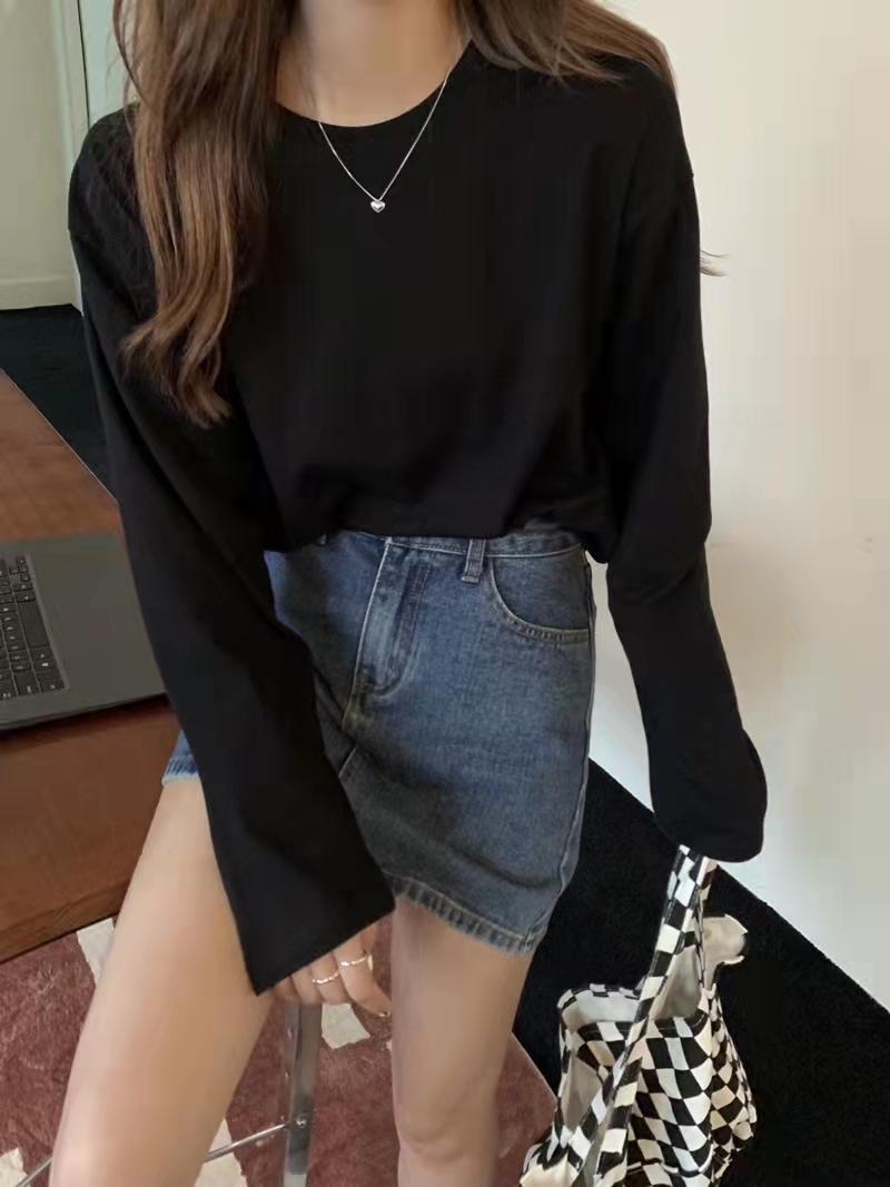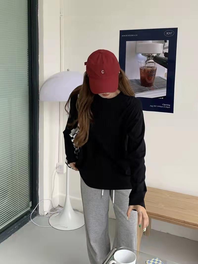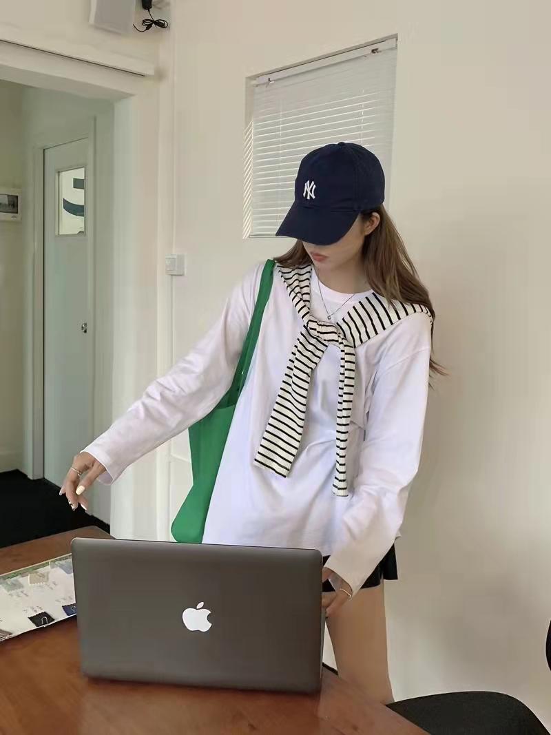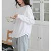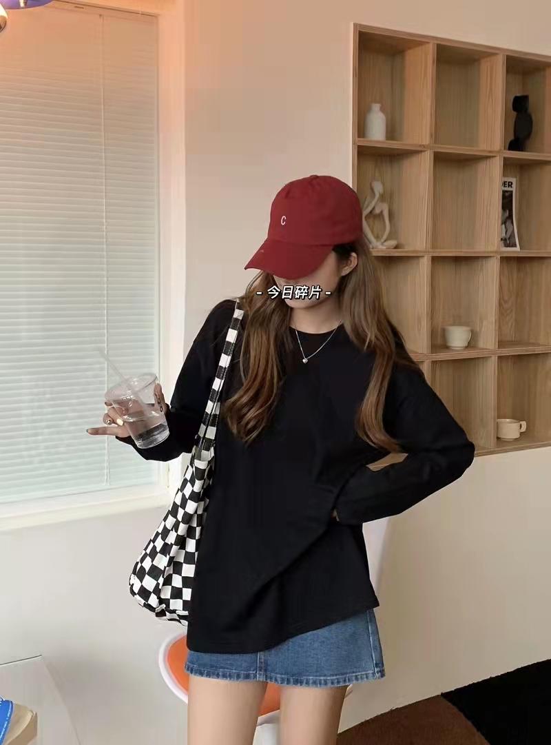 Playera holgada de manga larga de algodón simple de 250 g, suéter suelto con camiseta blanca de fondo para mujer, abrigo nuevo de otoño 2025