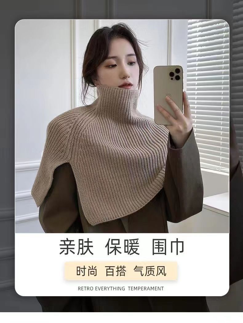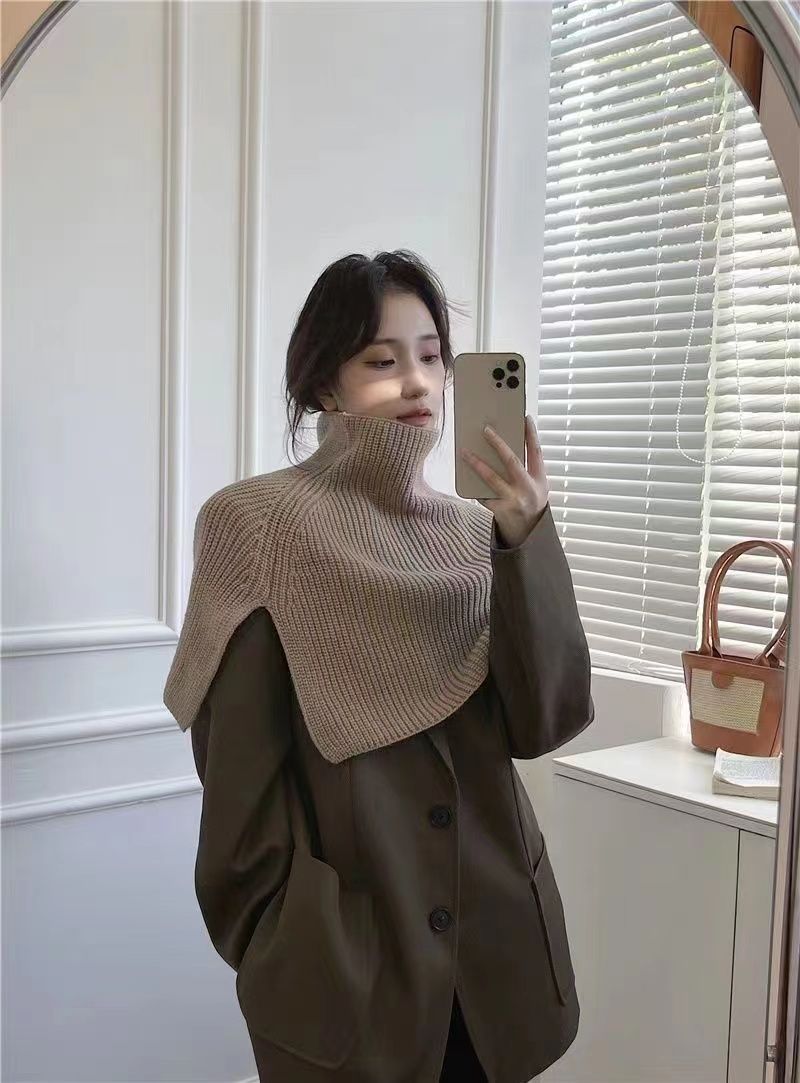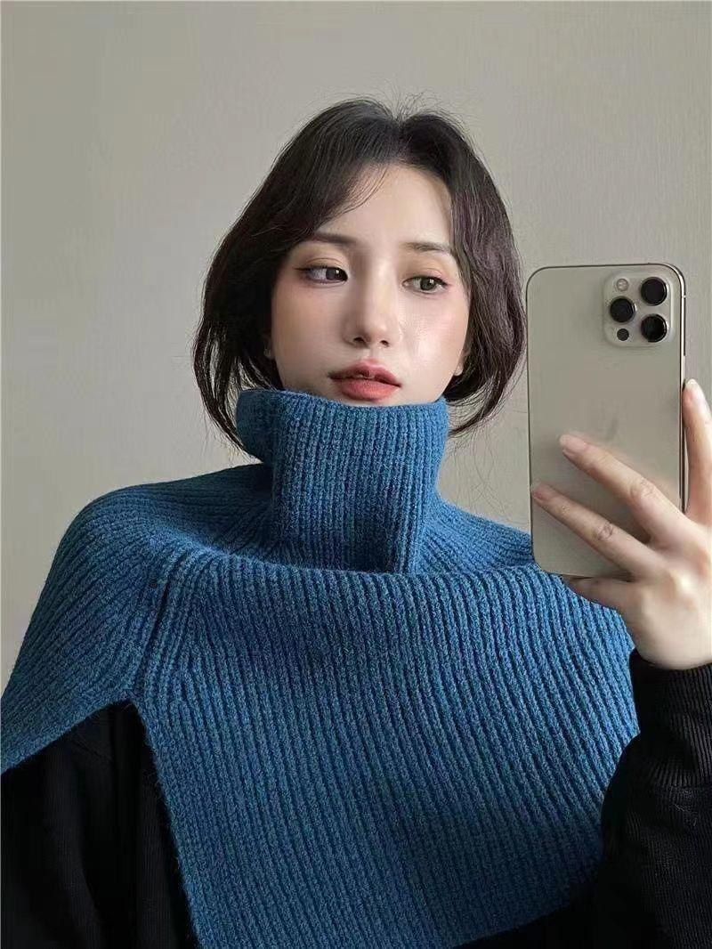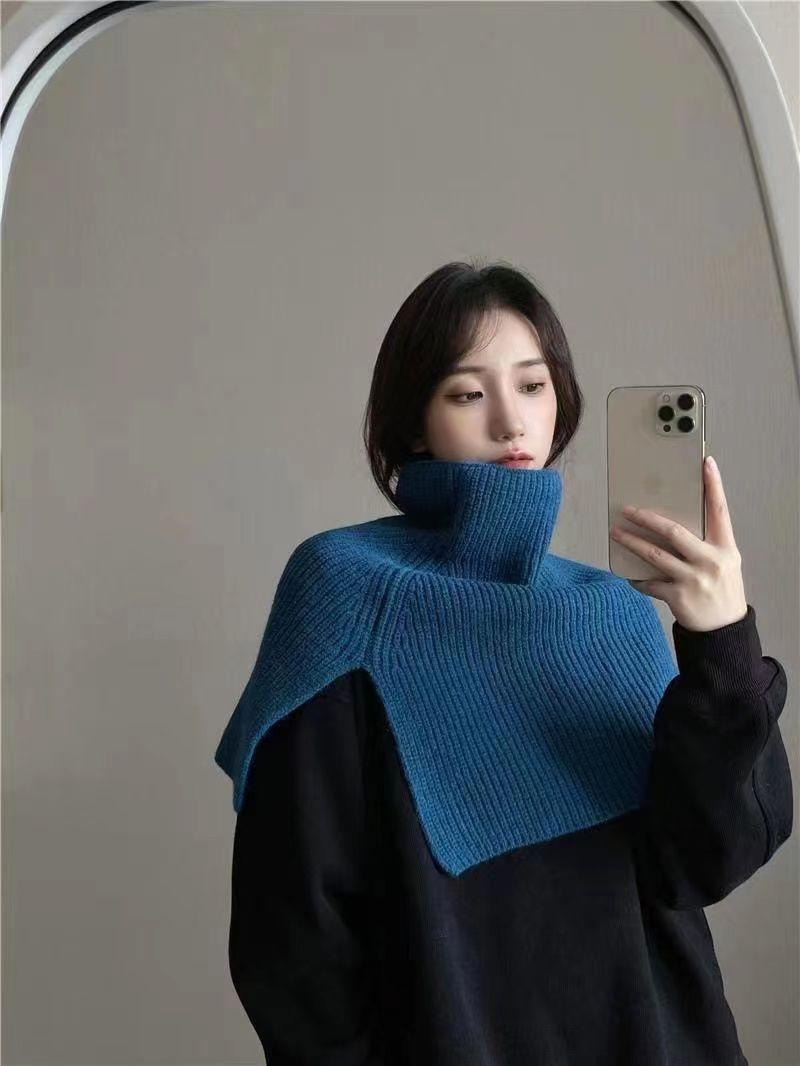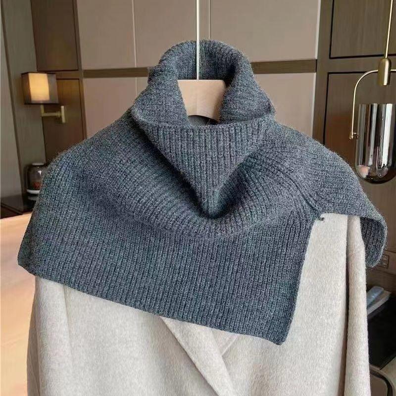 Bufanda de invierno para mujer Nueva Moda exterior bufanda tipo jersey para mujer color sólido estilo coreano versátil otoño cuello chal de punto de lana