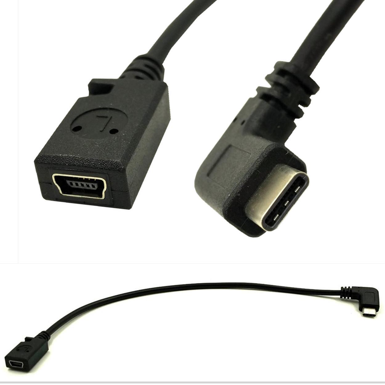 Cable adaptador macho TYPE-C en codo a hembra mini5p cable de datos y carga para teléfono móvil y tableta 0.3m;