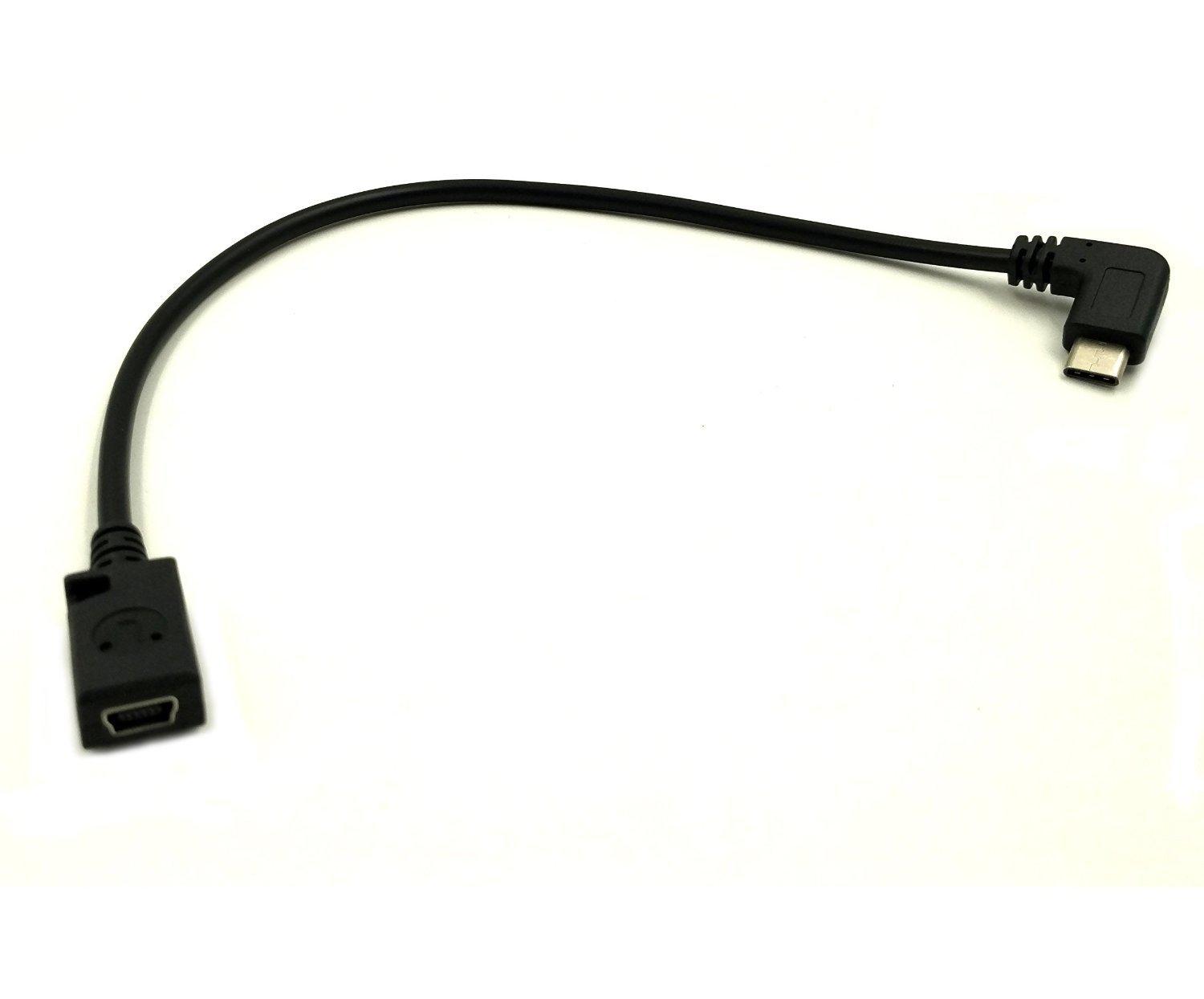 Cable de Carga USB-C en Ángulo Recto, Duttek USB 3.1 Tipo C Macho a Mini USB (Mini B) Hembra Cable Convertidor Cordón 0.3m;