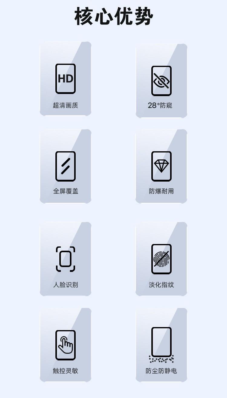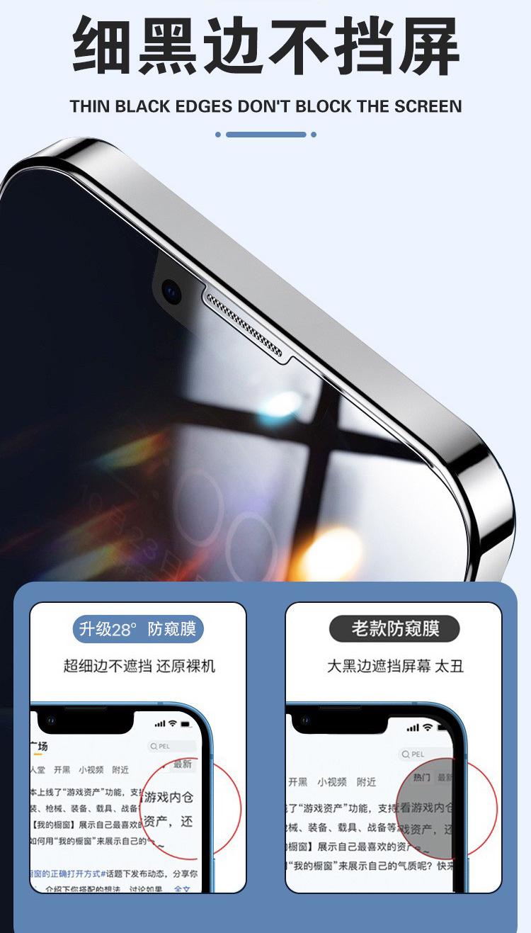 Parámetros de configuración] Película antiespía de serigrafía 28 grados: arco grande de aluminio alto; película antiespía de 30 grados sin bordes de alta transparencia