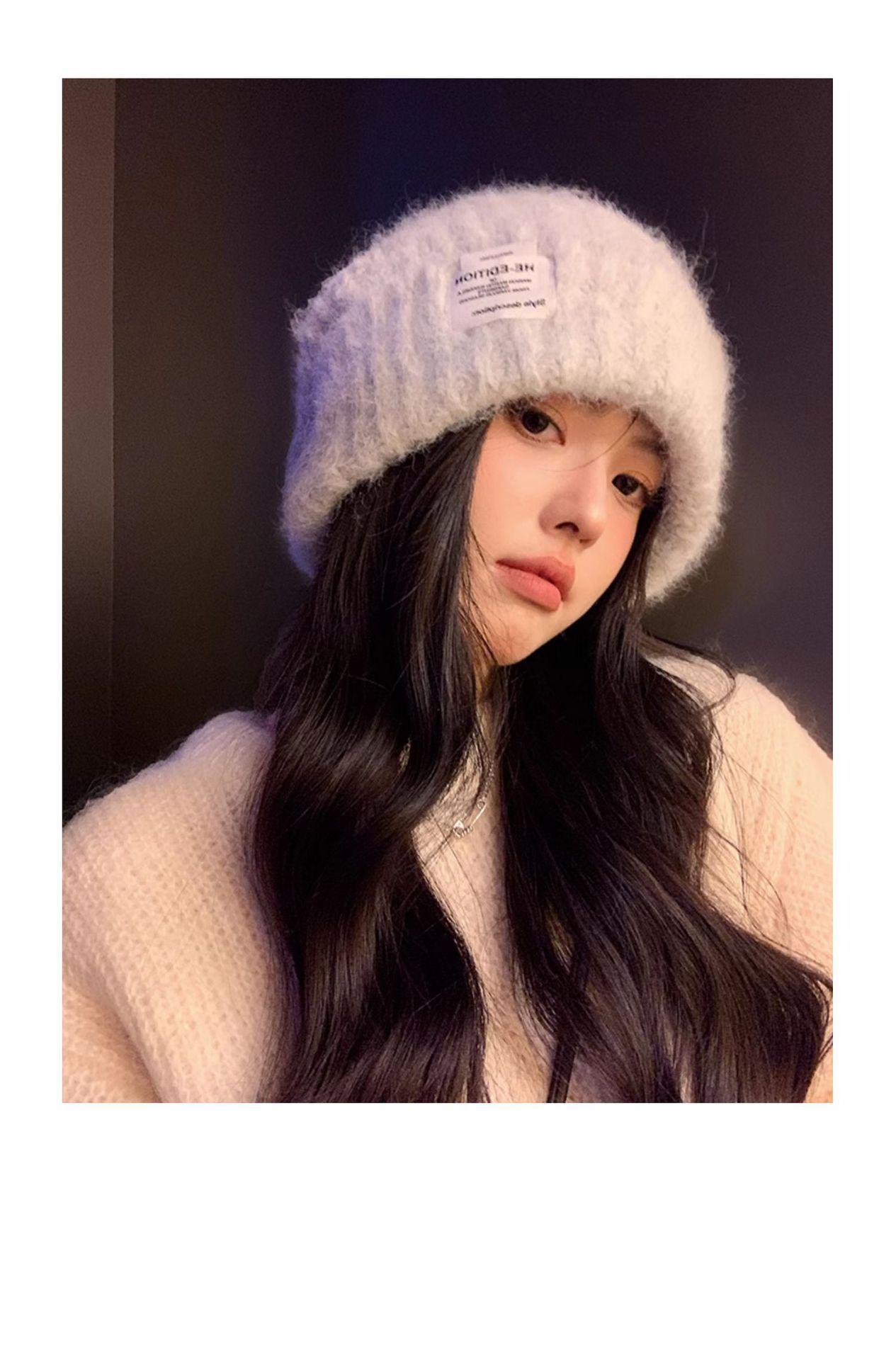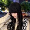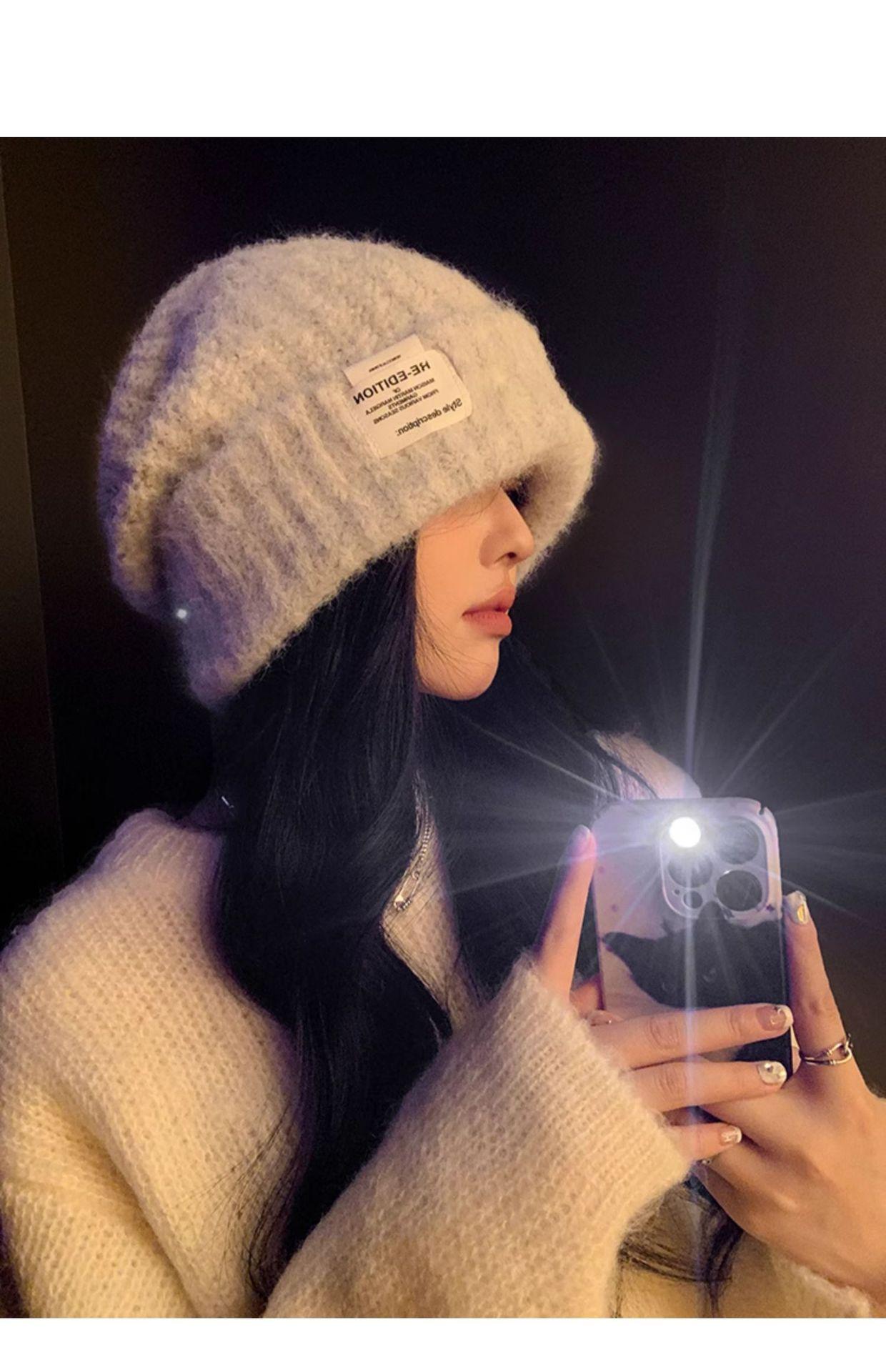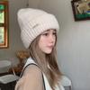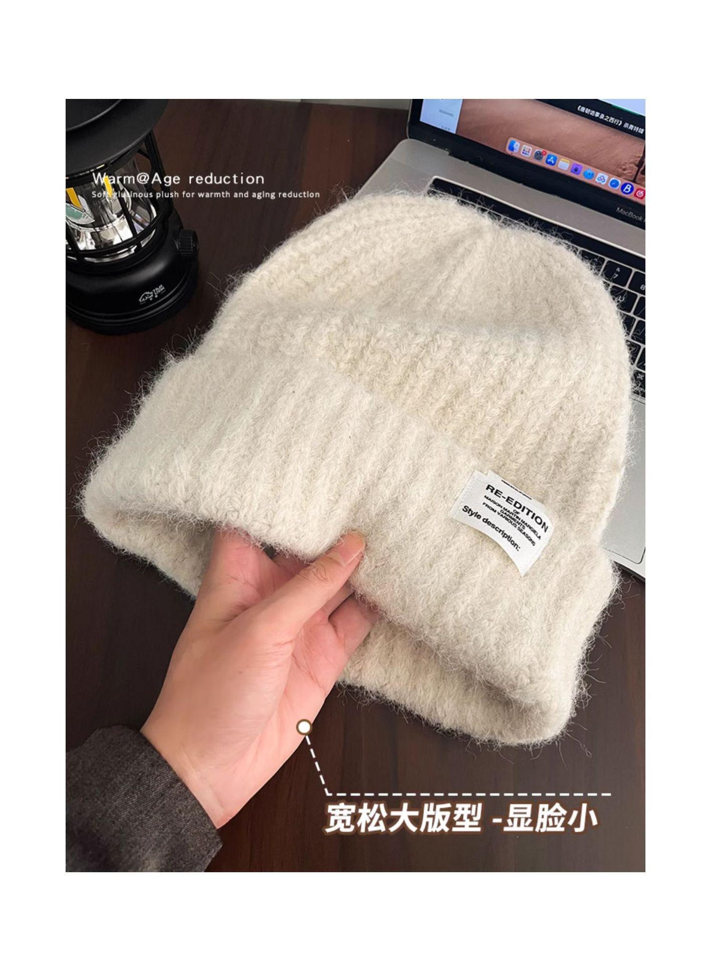 Gorro de Invierno para Mujer Nuevo Cálido Gorro de Lana Apilada Cabeza Grande Cara Pequeña Suelto Protección para las Orejas Marea Gorro Tejido