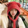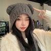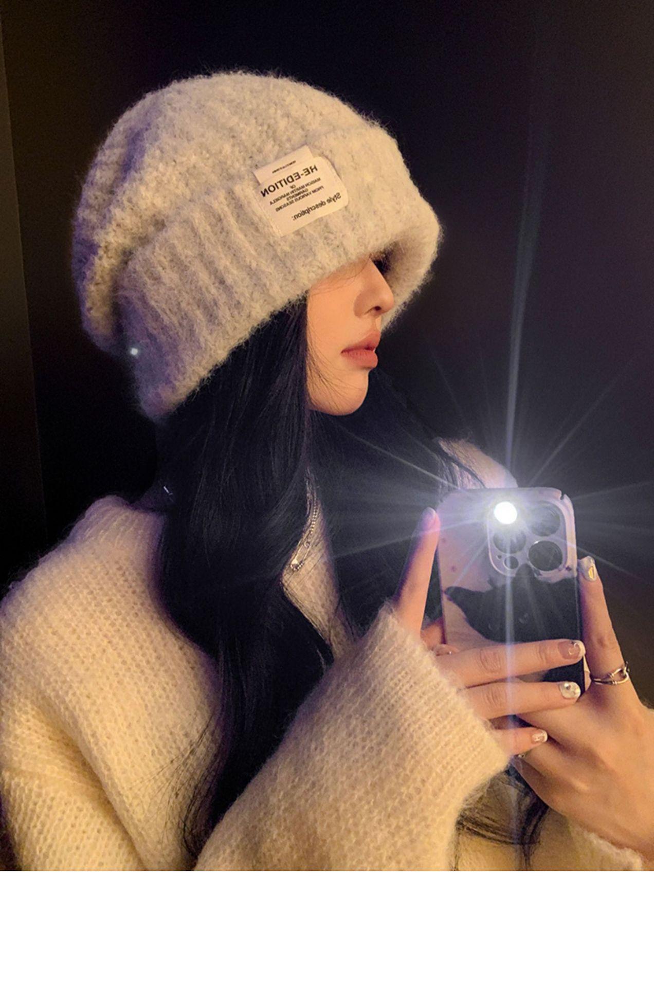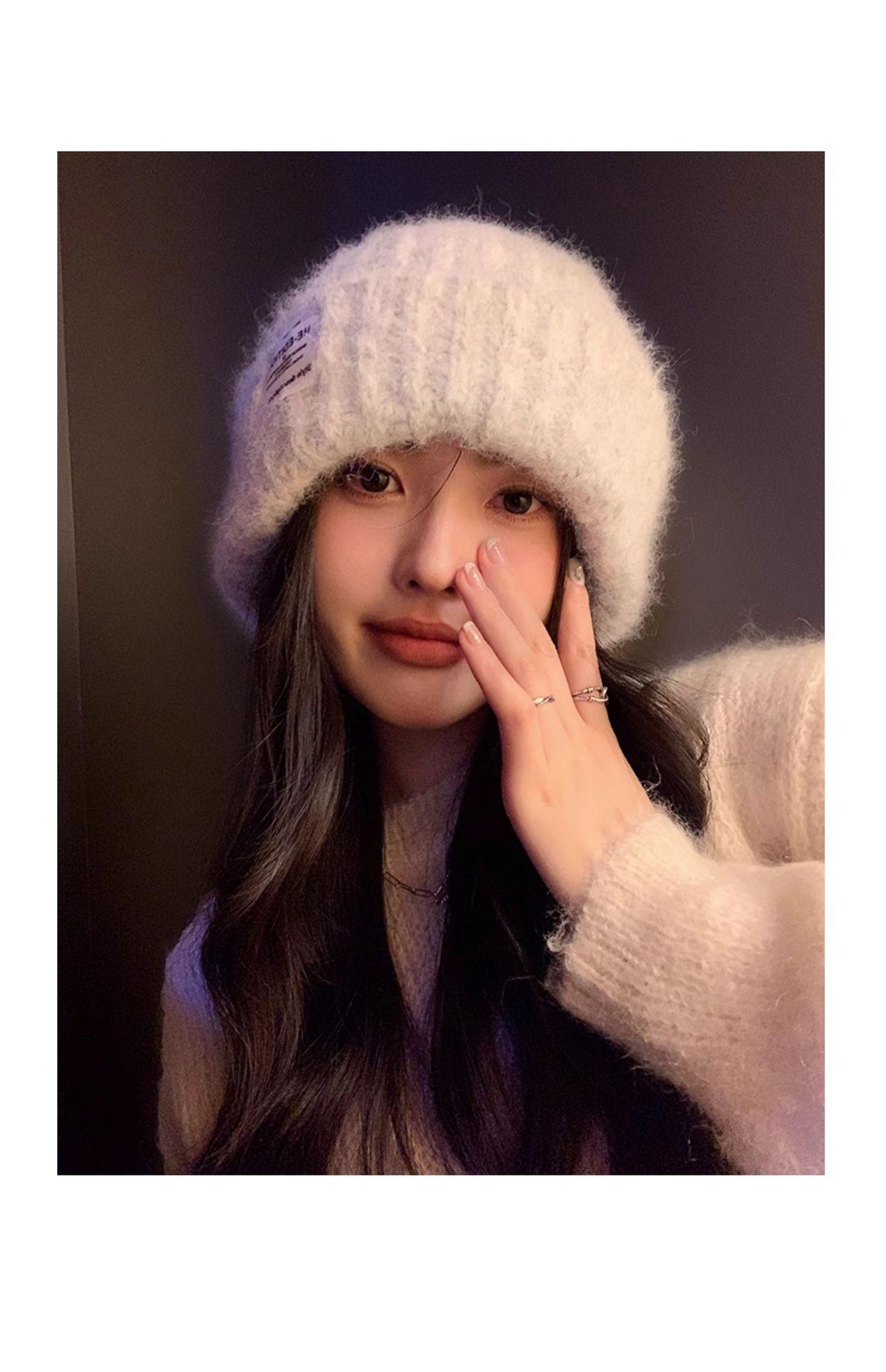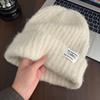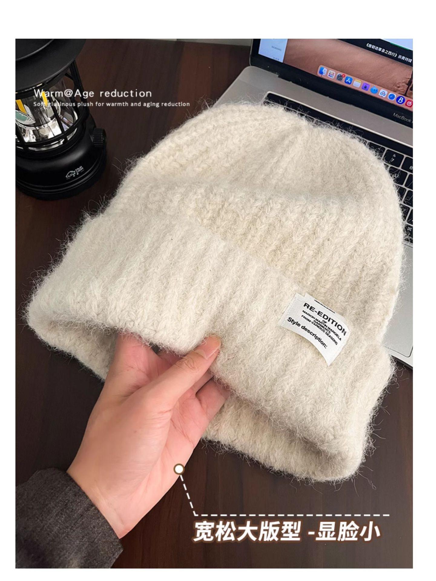 Gorro de Invierno para Mujer Nuevo Cálido Gorro de Lana Apilada Cabeza Grande Cara Pequeña Suelto Protección para las Orejas Marea Gorro Tejido