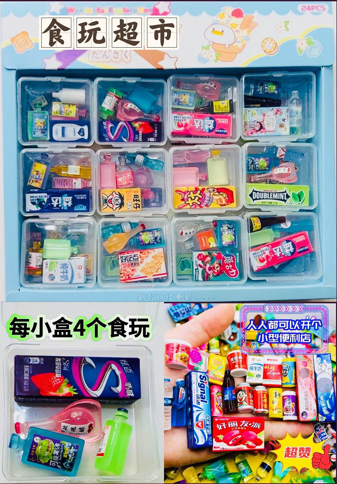 Venta al por menor 2 yuanes 24 Mini Juguetes para jugar, Comida y Juego Supermercado Modelo Miniatura Adornos Tienda de Snacks Más Vendidos