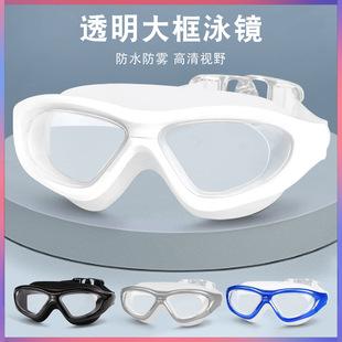 Gafas de natación al por mayor para hombres y mujeres, montura grande, alta definición, transparentes, luz plana, gafas de buceo profesionales, impermeables y antivaho |