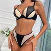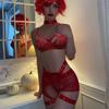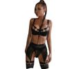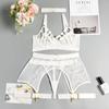 2022 verano nuevo ropa interior sexy para mujer europea y americana artesanía pesada costuras huecas complejo conjunto de cuatro piezas recogido en stock