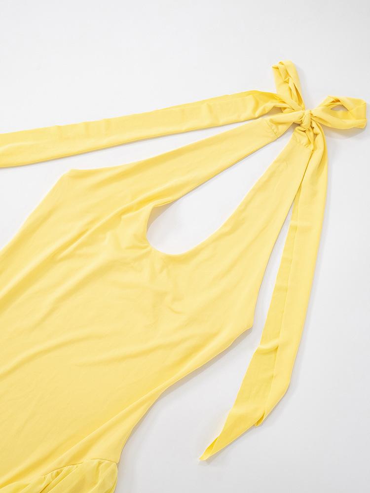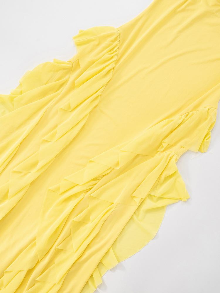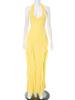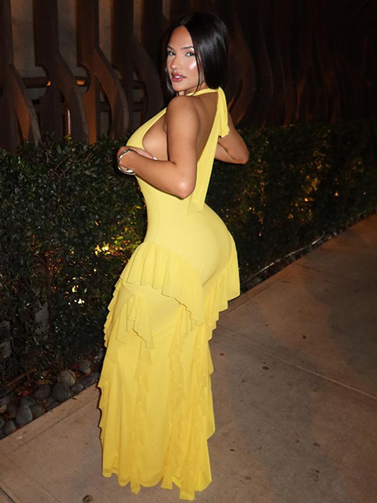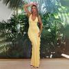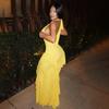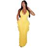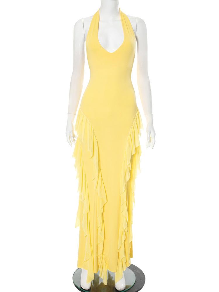 Estilo Ins Europeo y Americano Verano Vestido Largo Elegante con Volantes sin Mangas, Espalda Descubierta, Cuello en V, Tirantes Halter, Transfronterizo