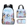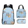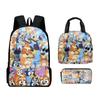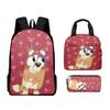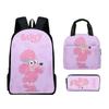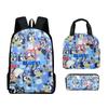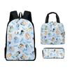 Mochila Estudiantil de Tres Piezas con Impresión 3D Nueva, Bolsa de Almuerzo, Estuche para Lápices, Juego de Tres Piezas