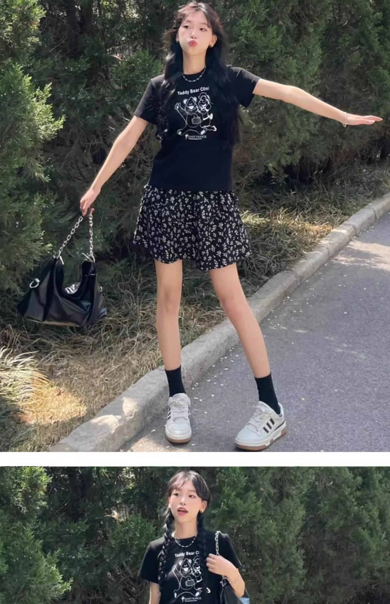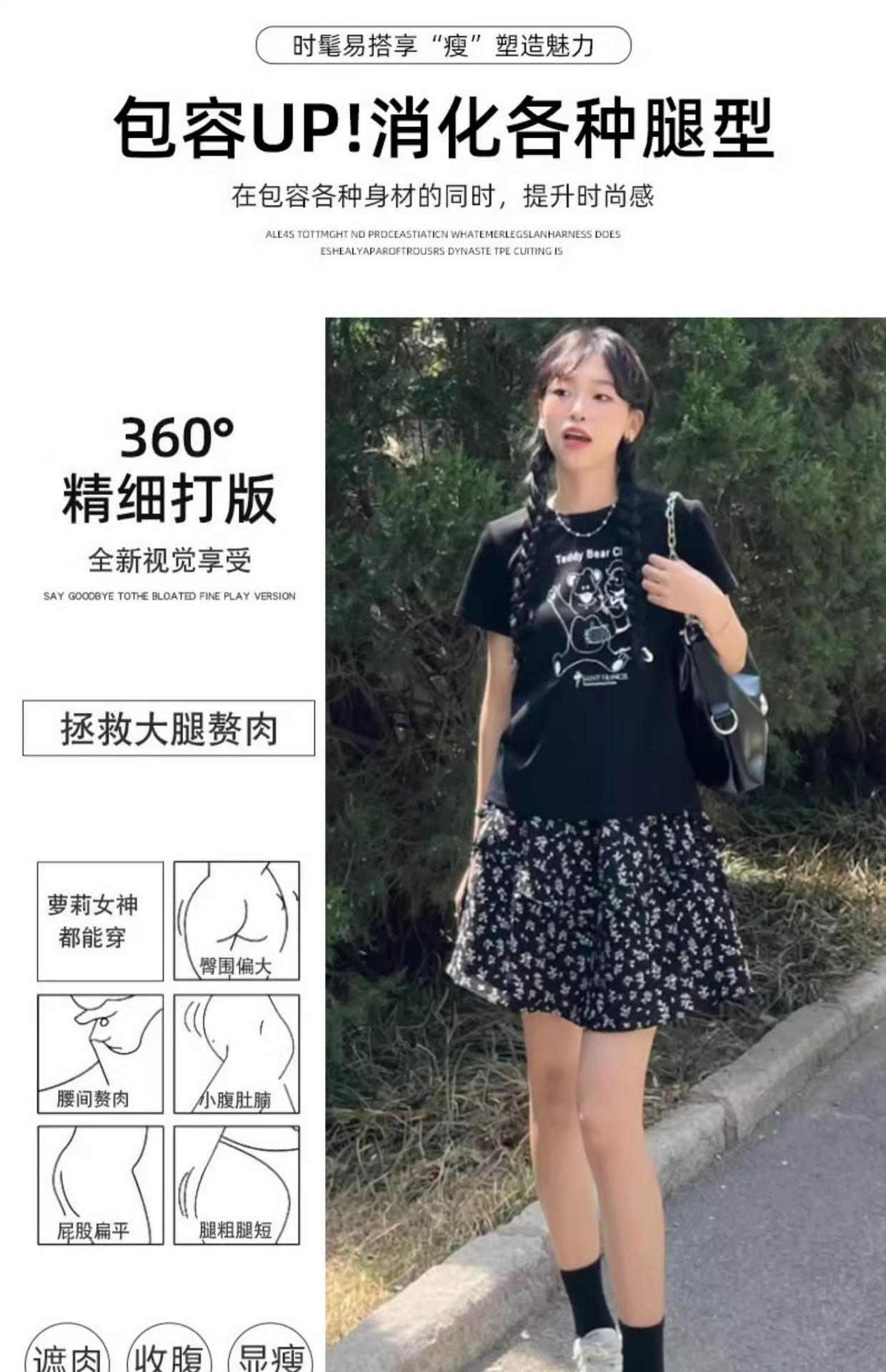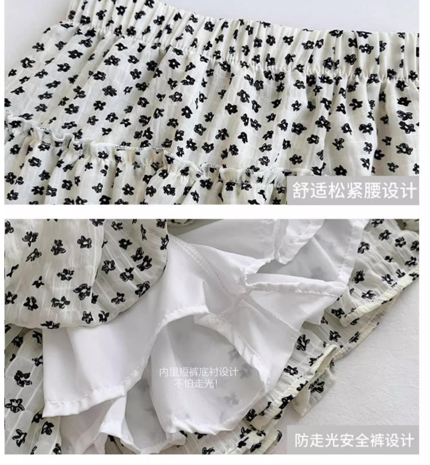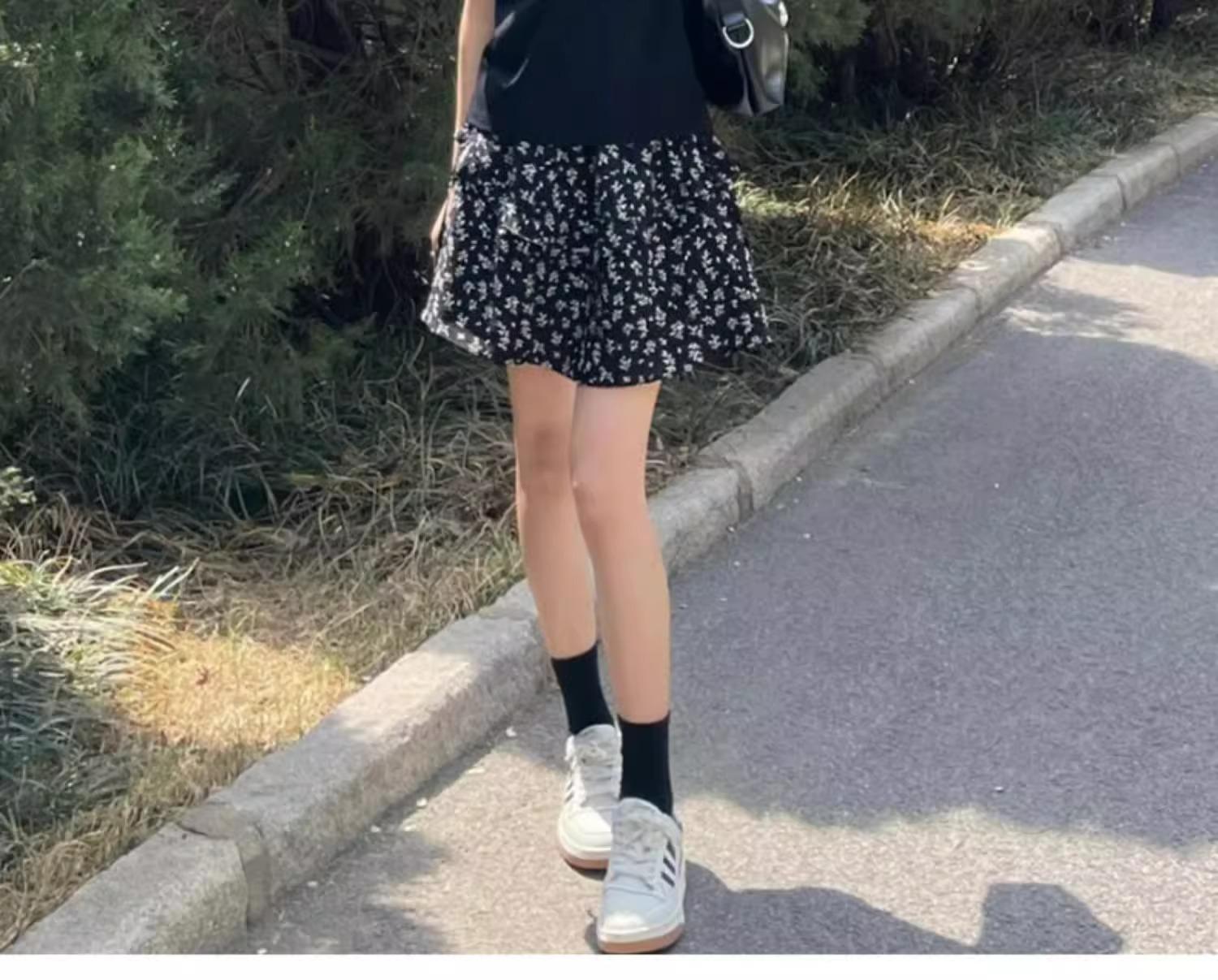 Verano 2025 Hermosa Falda Corta Floral Pequeña Primavera Nuevo Mujer Blanco Cintura Alta Línea A Falda Pastel Culottes Negros