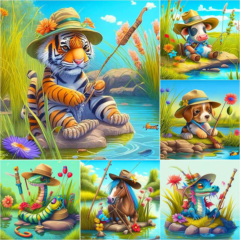 Pintura de diamantes de animales de comercio exterior transfronterizo de Amazon, hecha a mano, pegatina de diamante DIY, pintura decorativa para sala de estar.