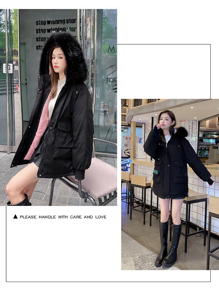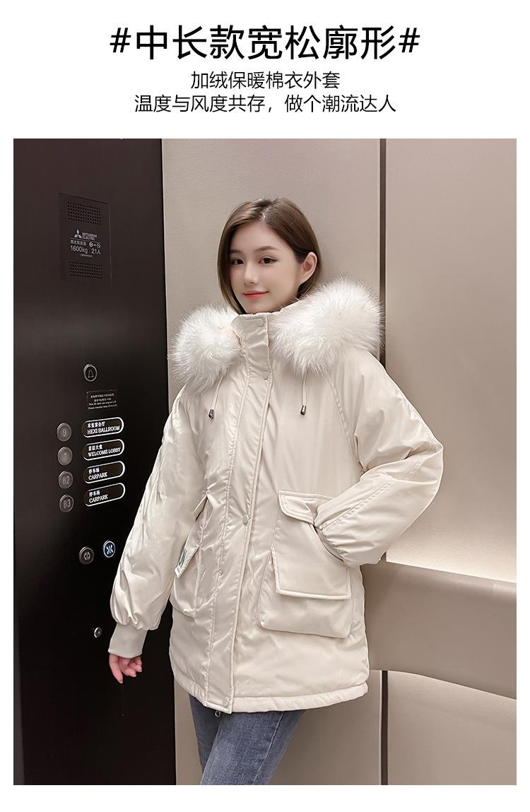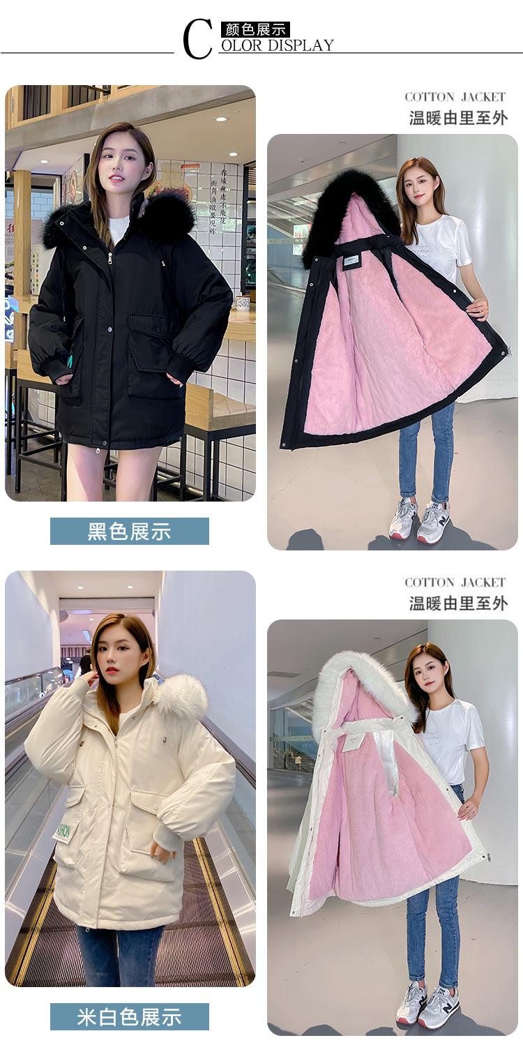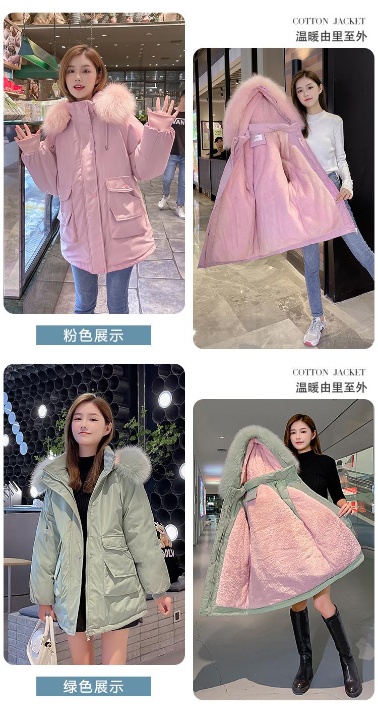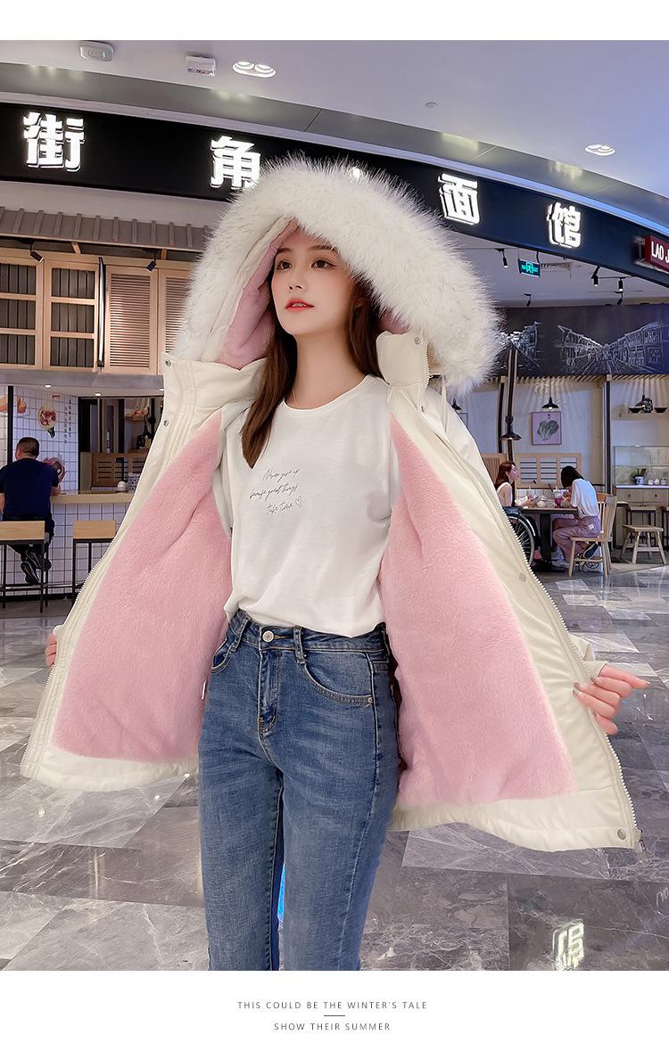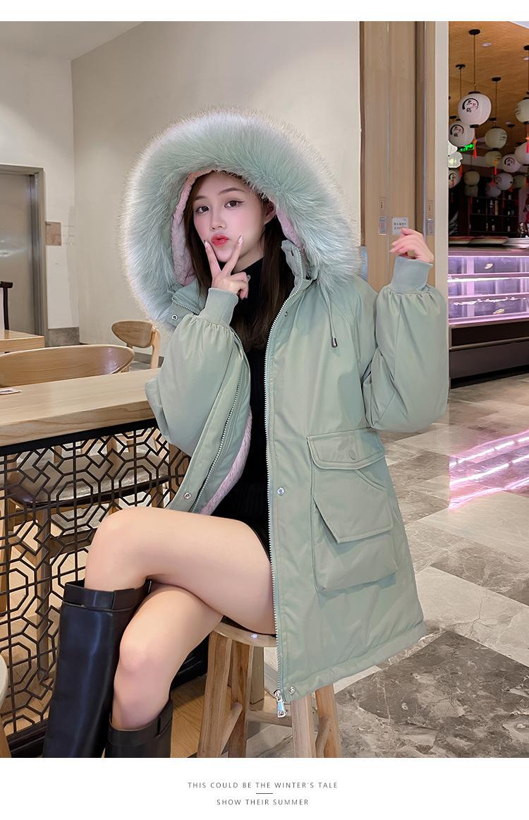 Ropa Parker para Mujer Largo Medio Nuevo Otoño e Invierno Forrado de Felpa Cálido Ropa Acolchada de Algodón Ajustado Talla Grande Abrigo Acolchado de Algodón Fuera de Temporada Cuello de Lana Abrigo Acolchado de Algodón