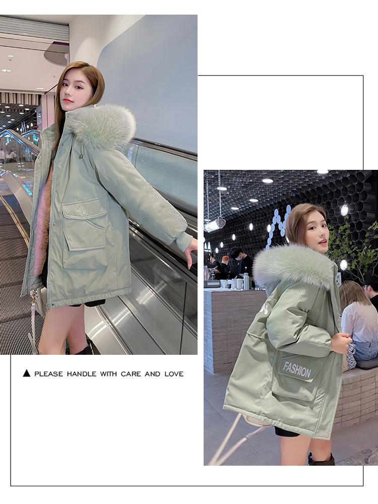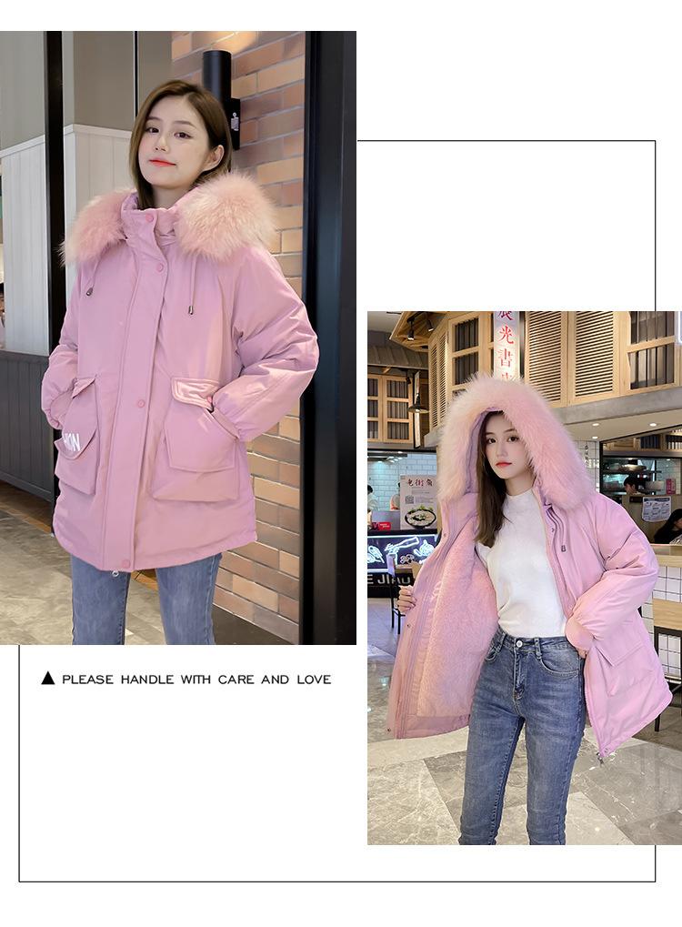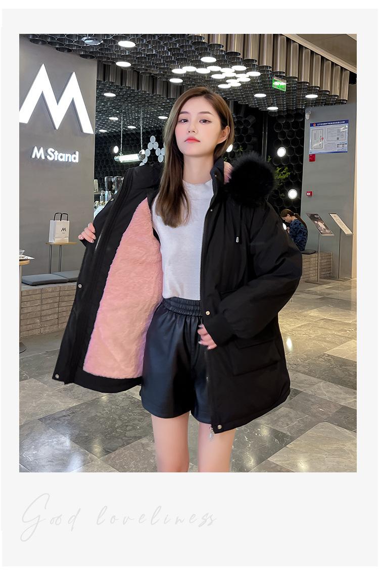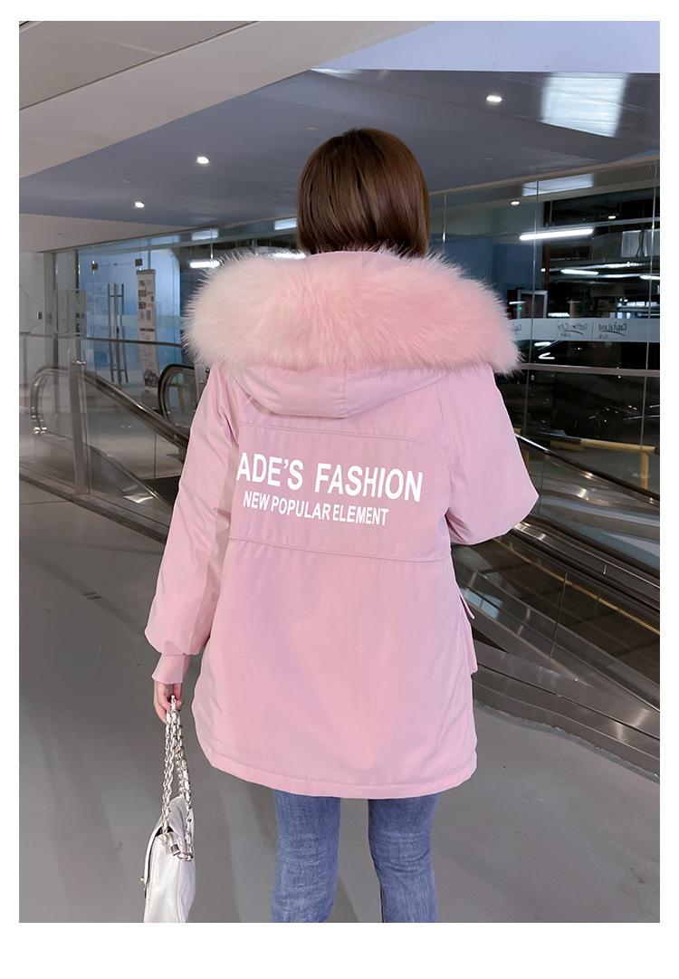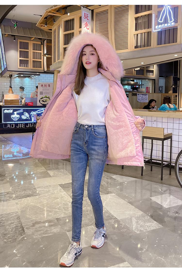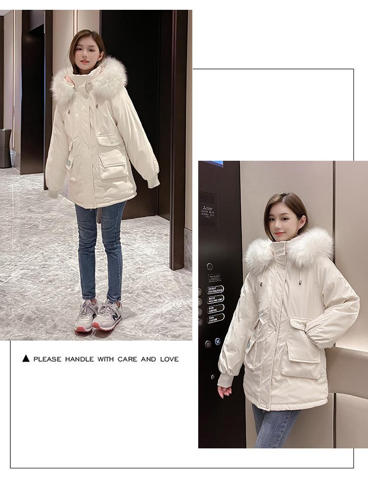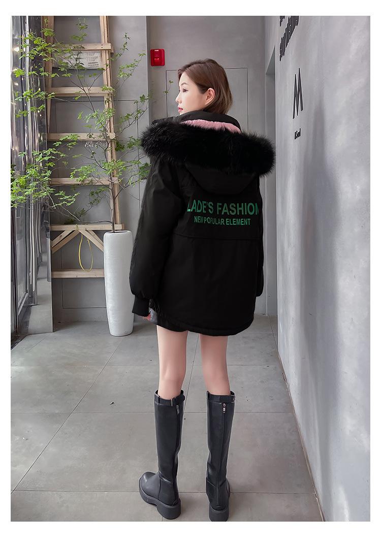 Ropa Parker para Mujer Largo Medio Nuevo Otoño e Invierno Forrado de Felpa Cálido Ropa Acolchada de Algodón Ajustado Talla Grande Abrigo Acolchado de Algodón Fuera de Temporada Cuello de Lana Abrigo Acolchado de Algodón