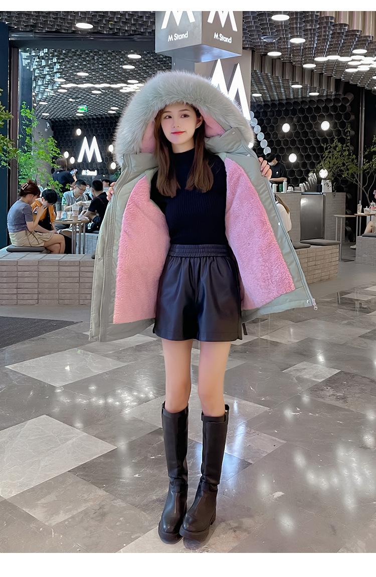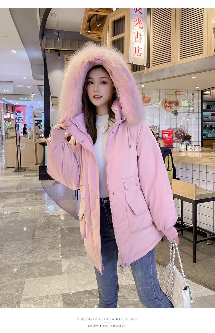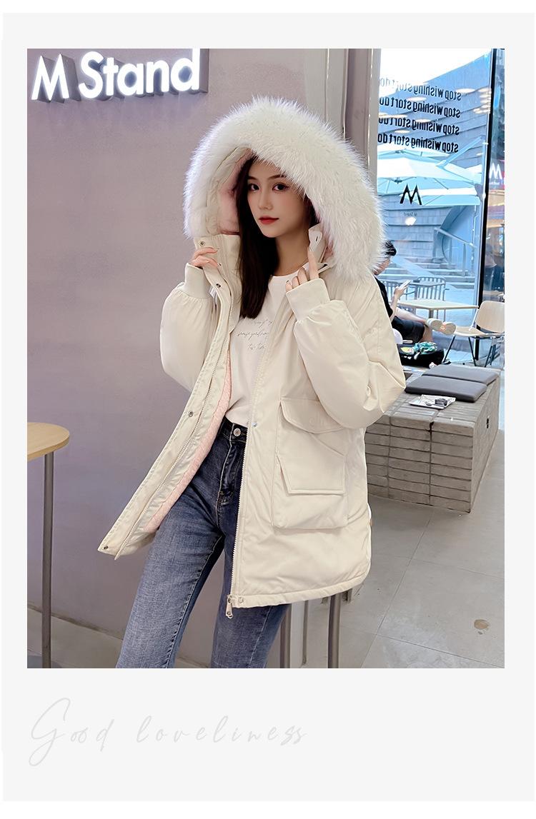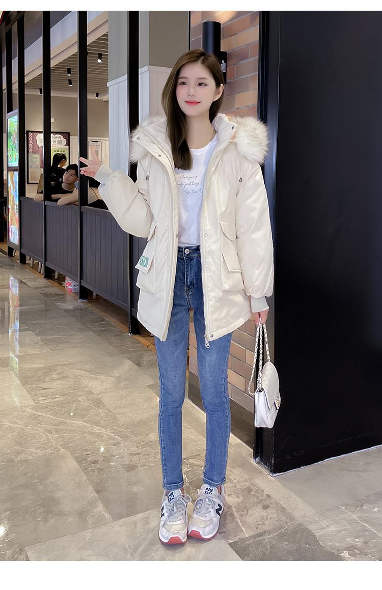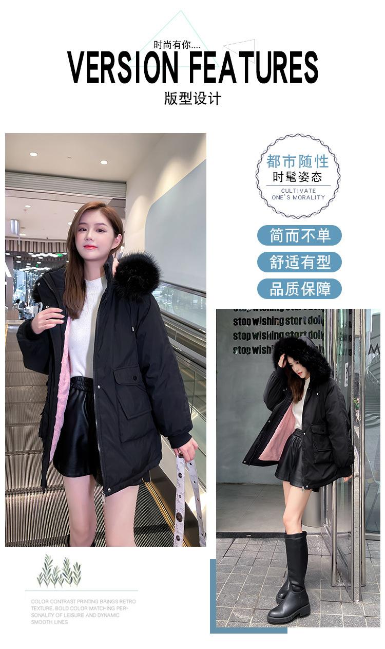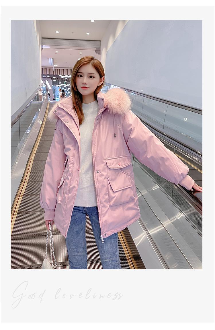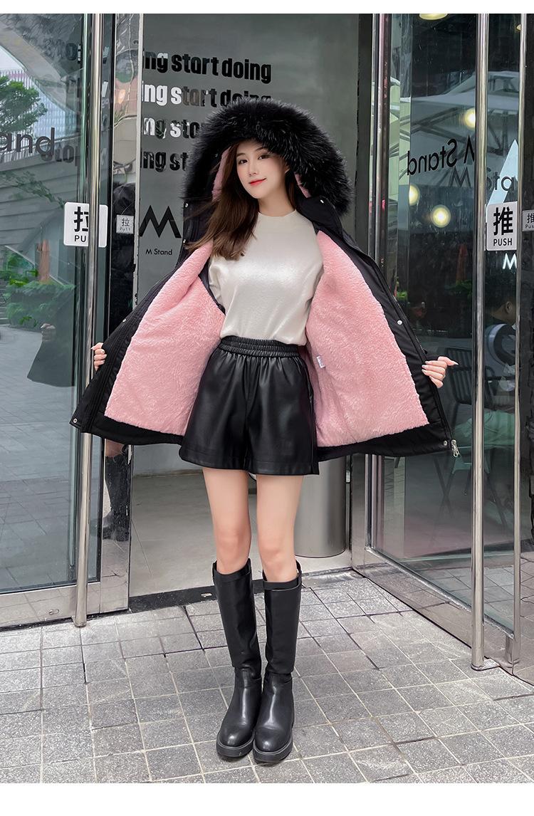 Ropa Parker para Mujer Largo Medio Nuevo Otoño e Invierno Forrado de Felpa Cálido Ropa Acolchada de Algodón Ajustado Talla Grande Abrigo Acolchado de Algodón Fuera de Temporada Cuello de Lana Abrigo Acolchado de Algodón