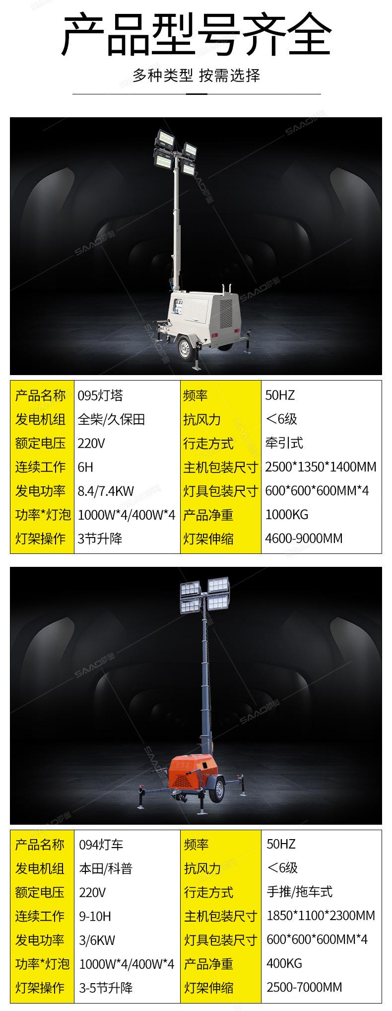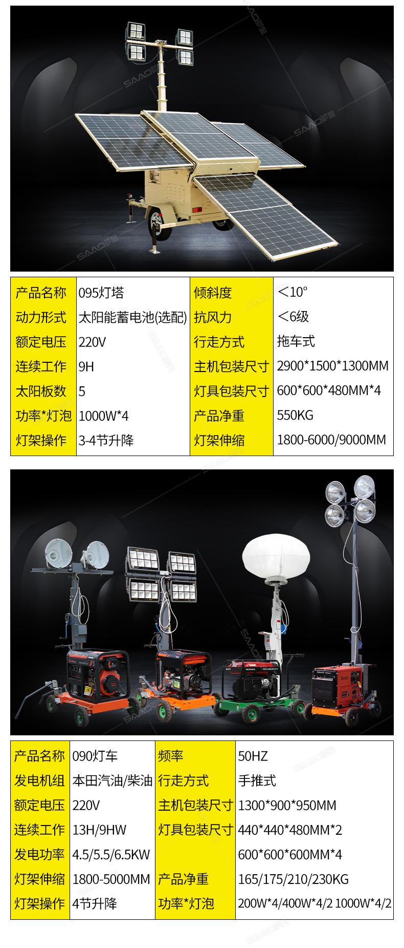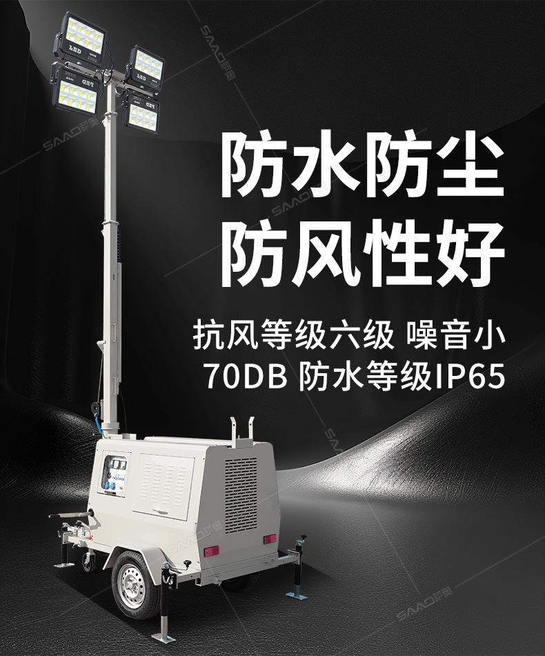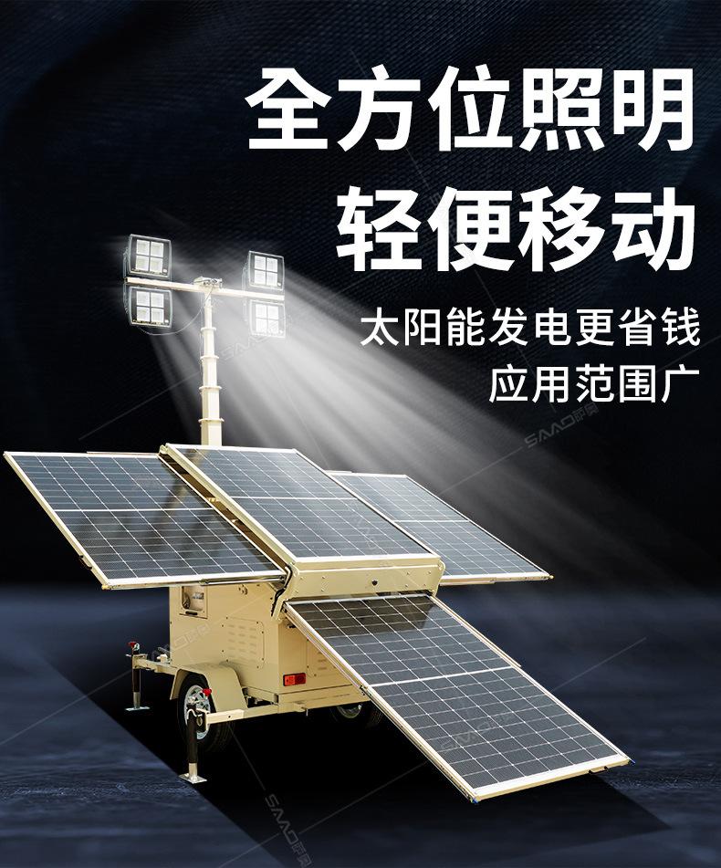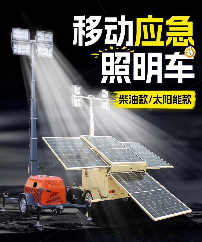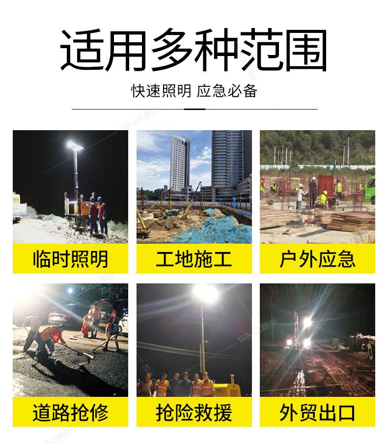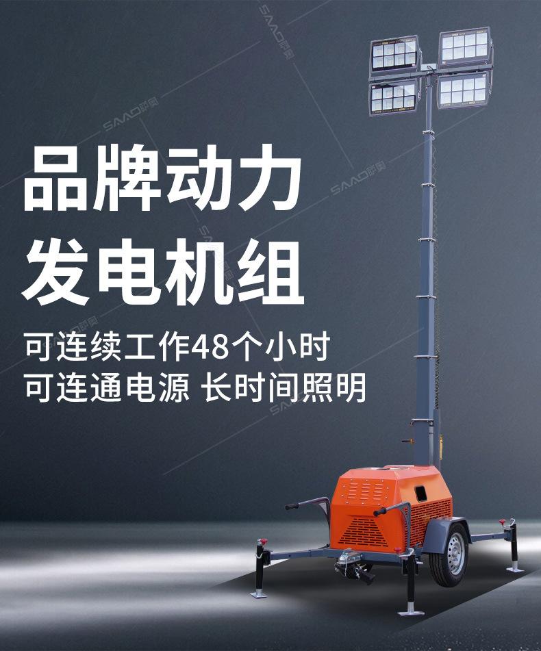 Remolque móvil con vehículo de iluminación de emergencia nocturna para estadios, vehículo de iluminación móvil de 9 metros de altura, cabrestante de elevación manual de 360 grados