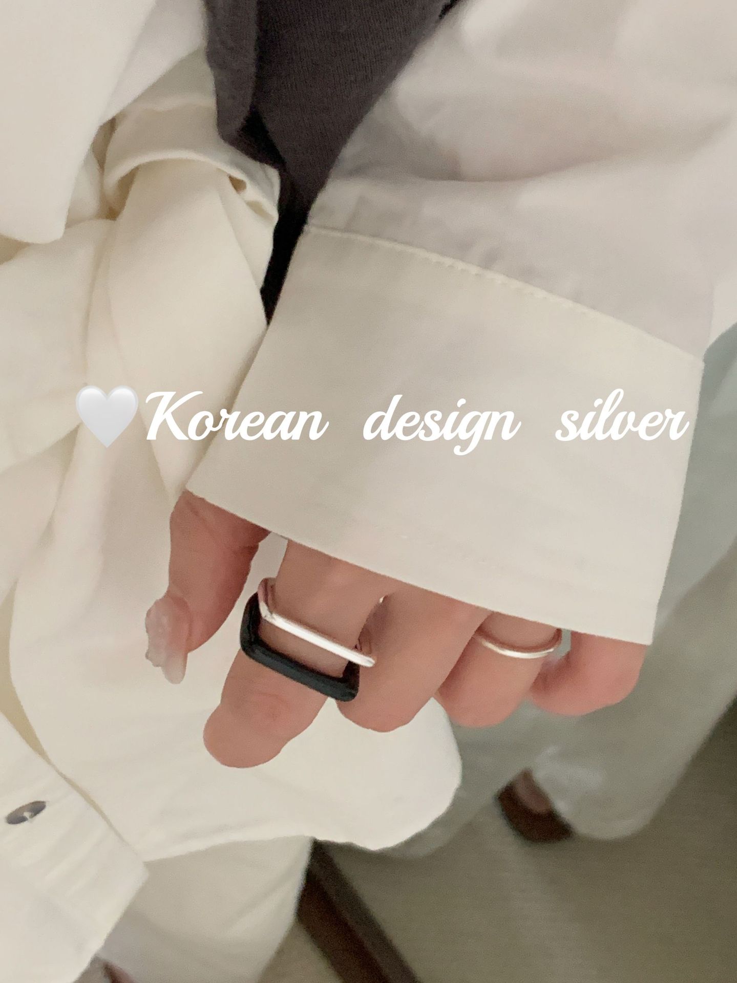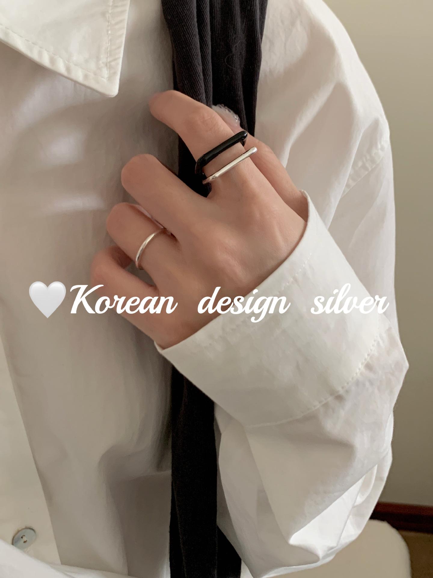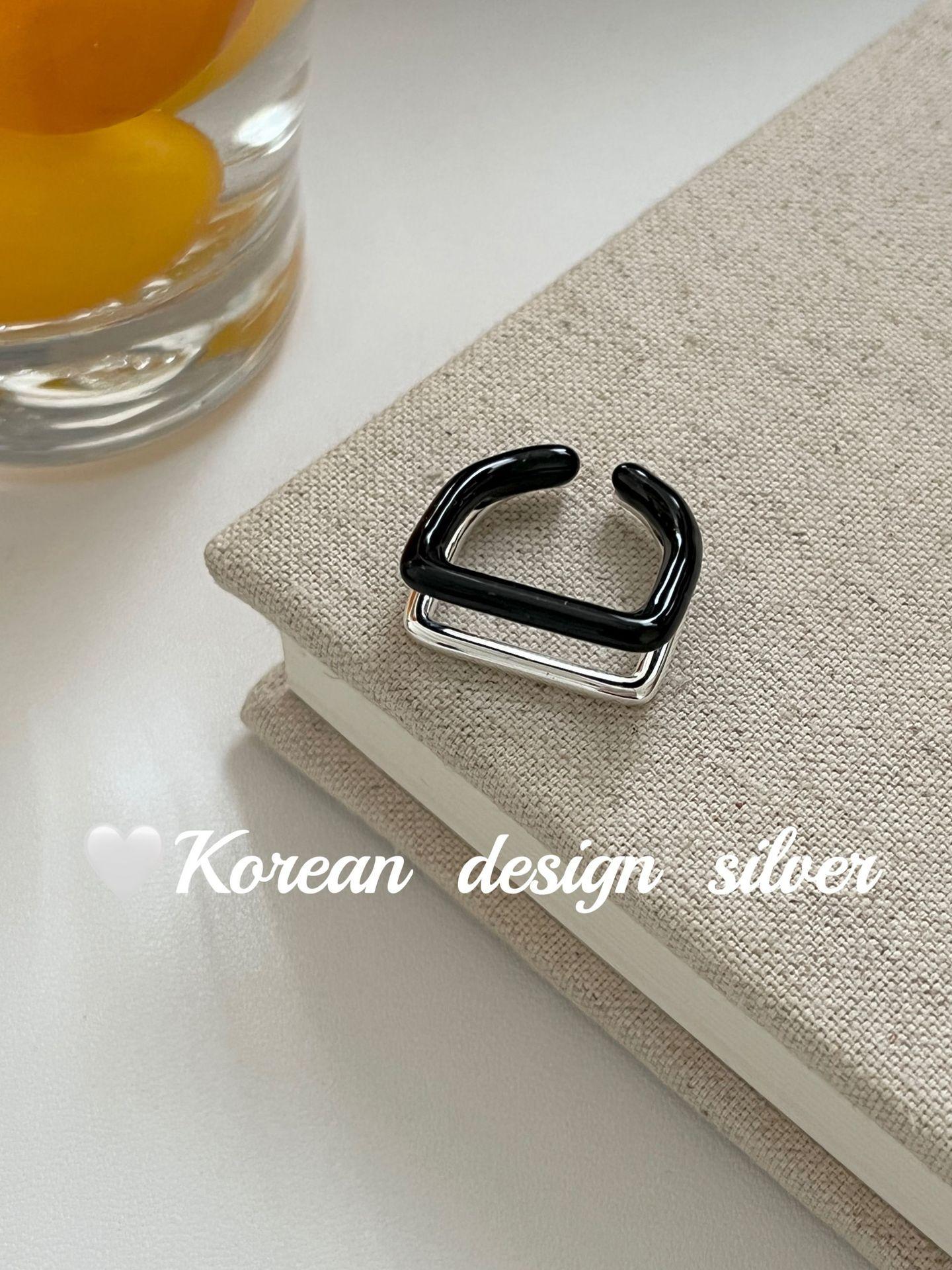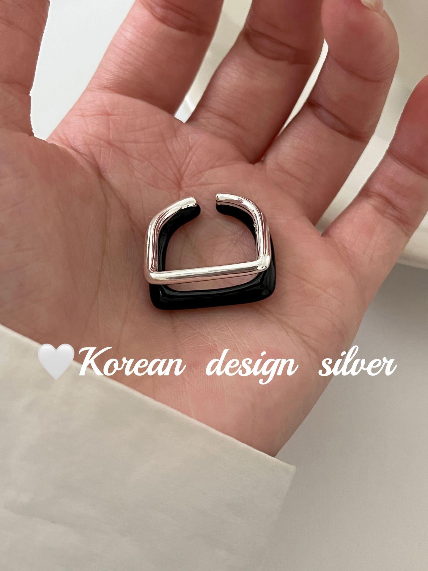 Anillo de Diseño Nicho estilo ins Japonés y Coreano Plata Esterlina S925 Doble Capa Anillo con Gota de Pegamento Negro Apilado con Abertura