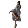 Amazon Ropa Nueva para Mujer Comercio Exterior Color Sólido Holgado Europeo y Americano Largo Medio Punto Solapa Bolsillo Pantalones Cárdigan Chaqueta de Punto para Mujer