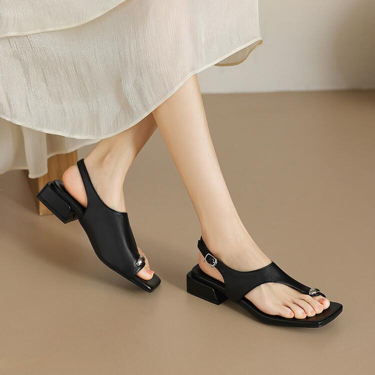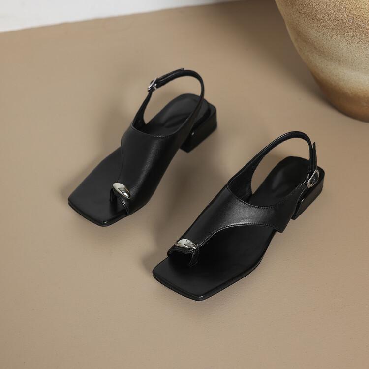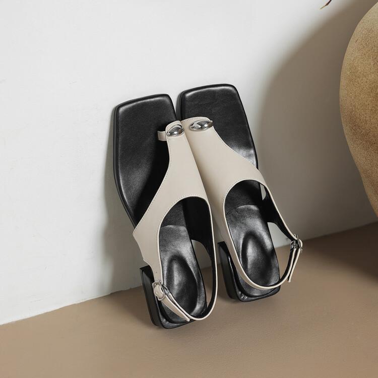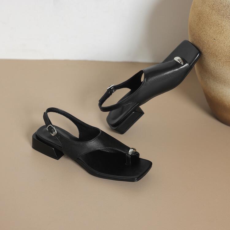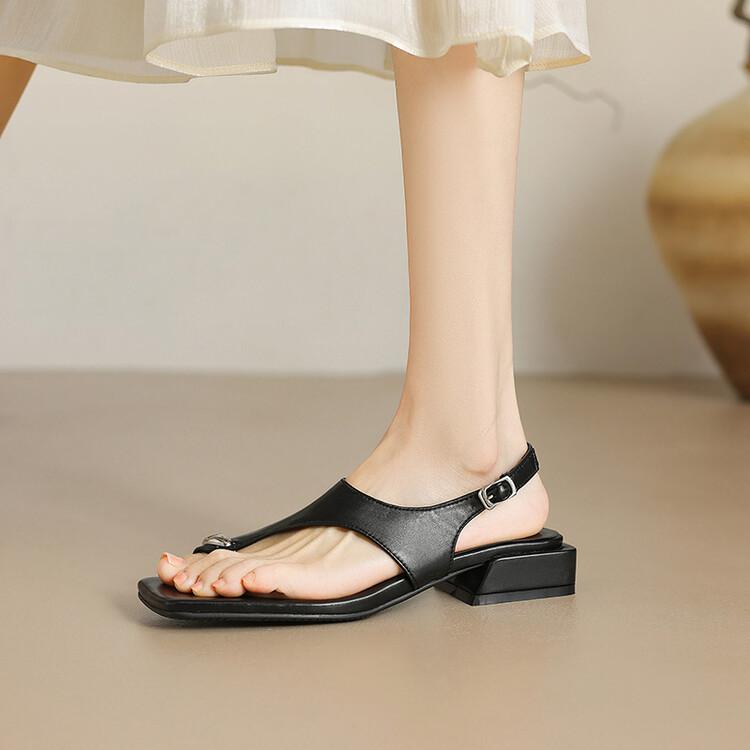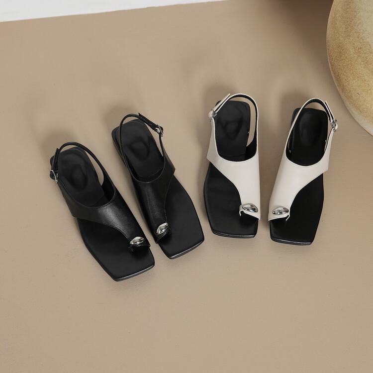 Nuevas Sandalias Casuales de Dedo para Mujer, Slip-on con Hebilla, Talla Talla Vacío, Color Sólido, Verano, Suela de Goma, Sandalias Planas