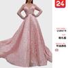 Vestido de Noche Estilo Francés con Hombros Descubiertos Transfronterizo Nuevo Banquete de Cumpleaños Ceremonia de Adultos Vestido de Noche Espalda Lazo Grande Cola Larga