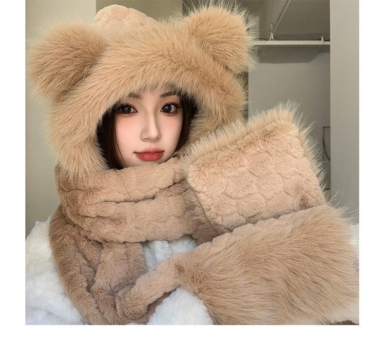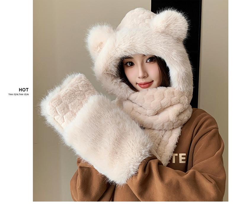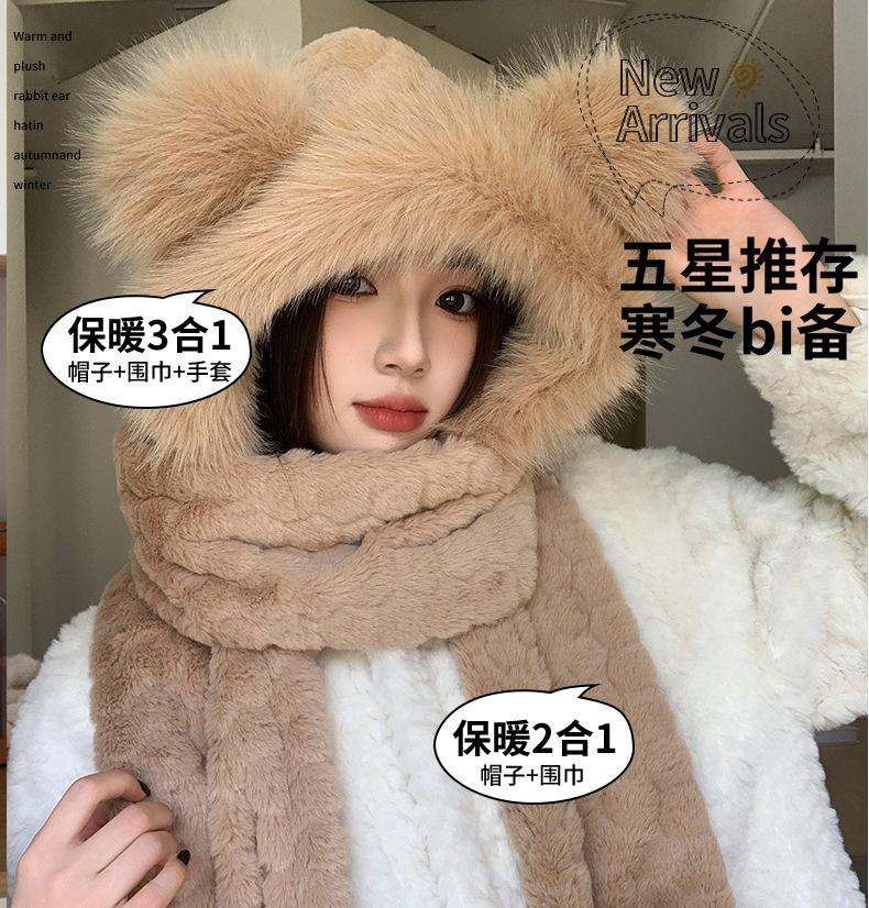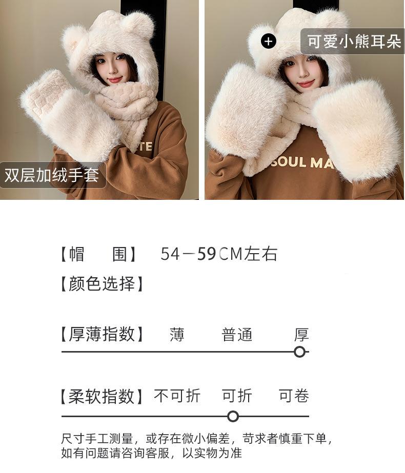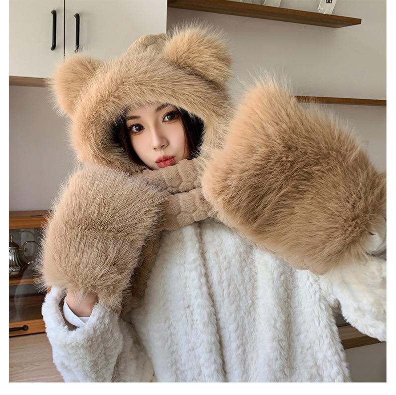 Invierno nuevo sombrero bufanda guantes de tres piezas lindo oso felpa chal sombrero a prueba de frío sombrero de una pieza sombrero de felpa