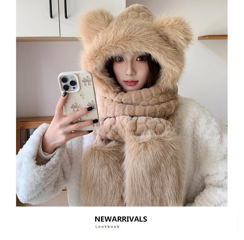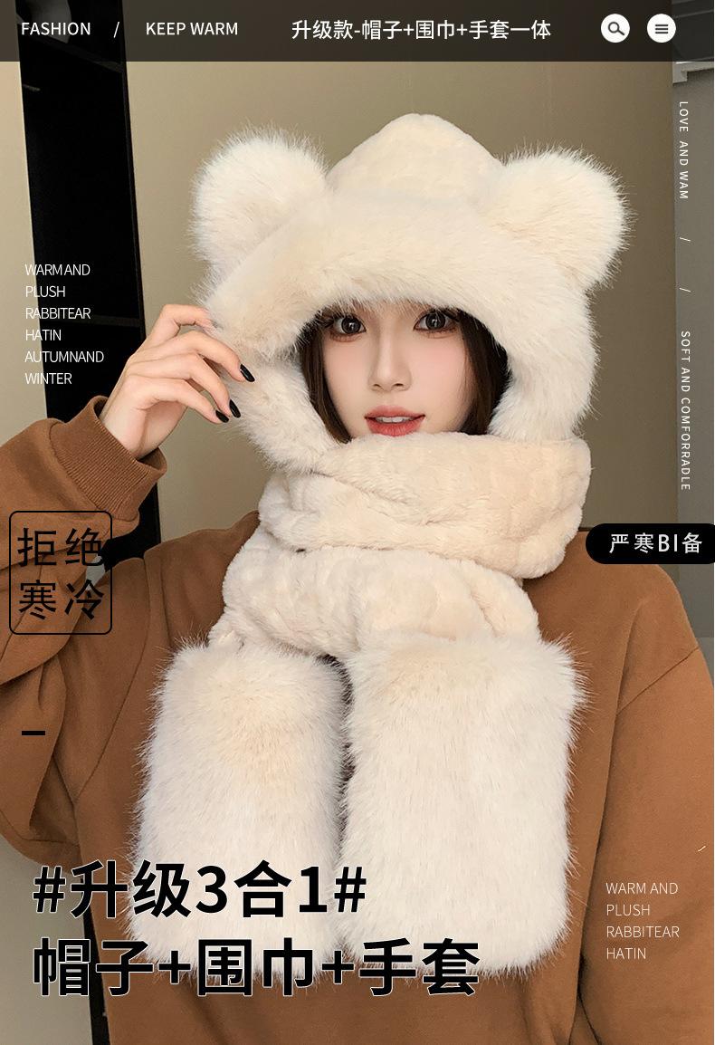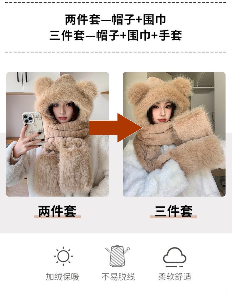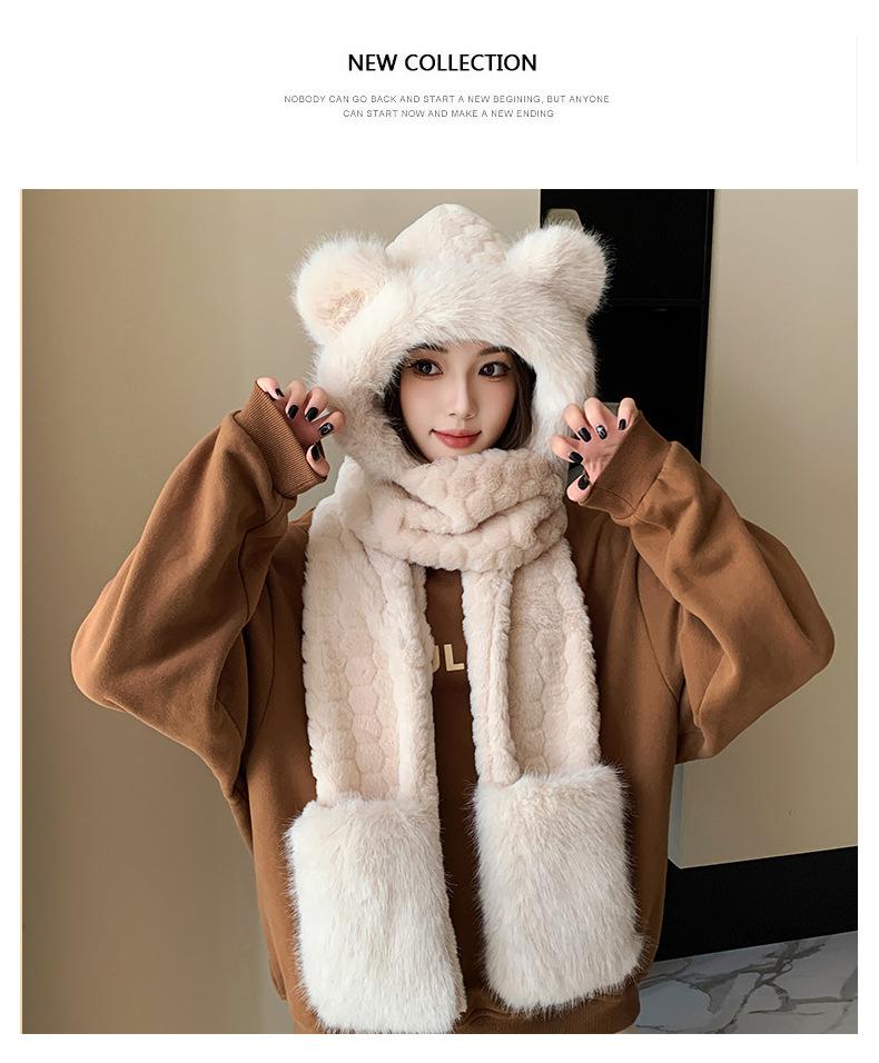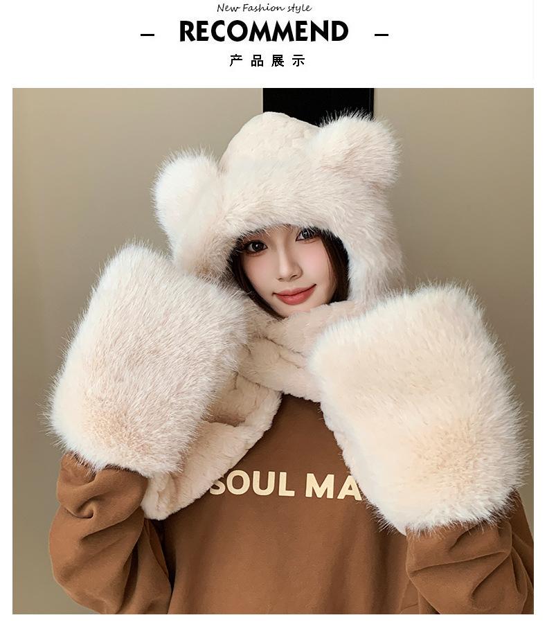 Invierno nuevo sombrero bufanda guantes de tres piezas lindo oso felpa chal sombrero a prueba de frío sombrero de una pieza sombrero de felpa