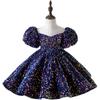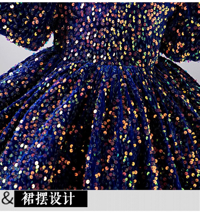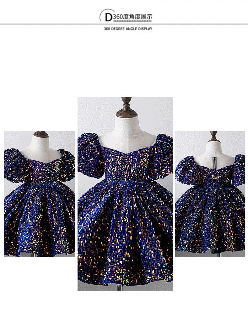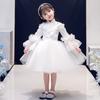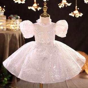 Vestido de bebé de un año vestido de actuación de piano niña blanco manga abullonada corto lentejuela modelo pasarela disfraz de actuación