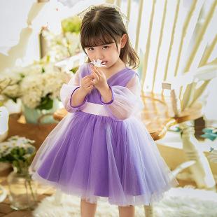 Vestido morado de un año para bebé niña nuevo verano niños tocar el piano pequeña anfitriona pasarela vestido de princesa