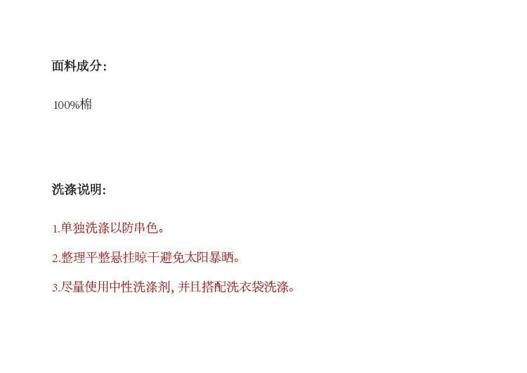 1. Normalmente, la ropa se puede lavar a mano o a máquina. Tanto si son de colores contrastantes como de un solo color, no deben remojarse durante mucho tiempo. Lávelas en cuanto estén en remojo. No las mezcle. Lávelas por separado para evitar manchas o decoloración.