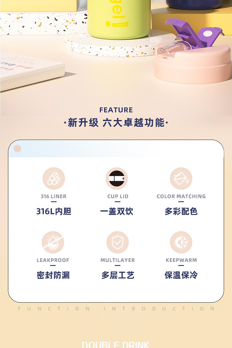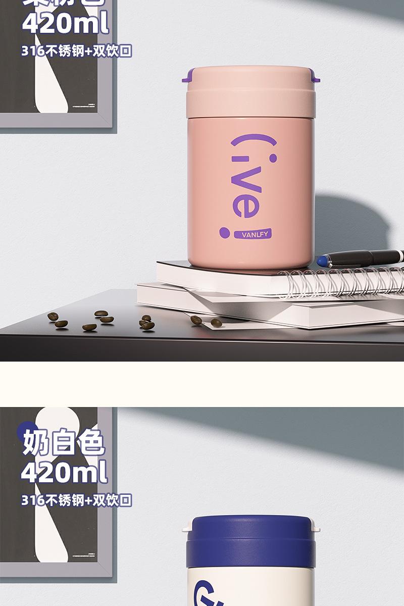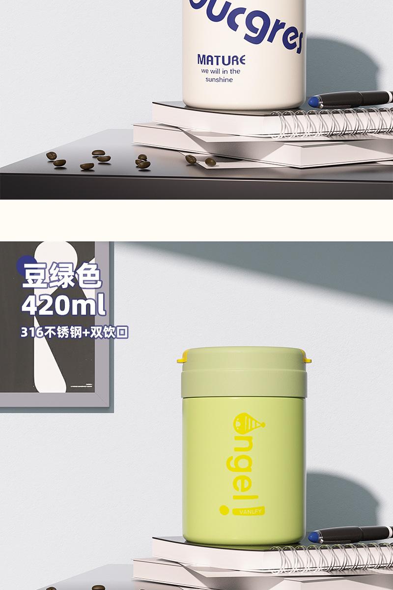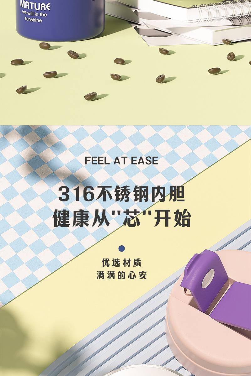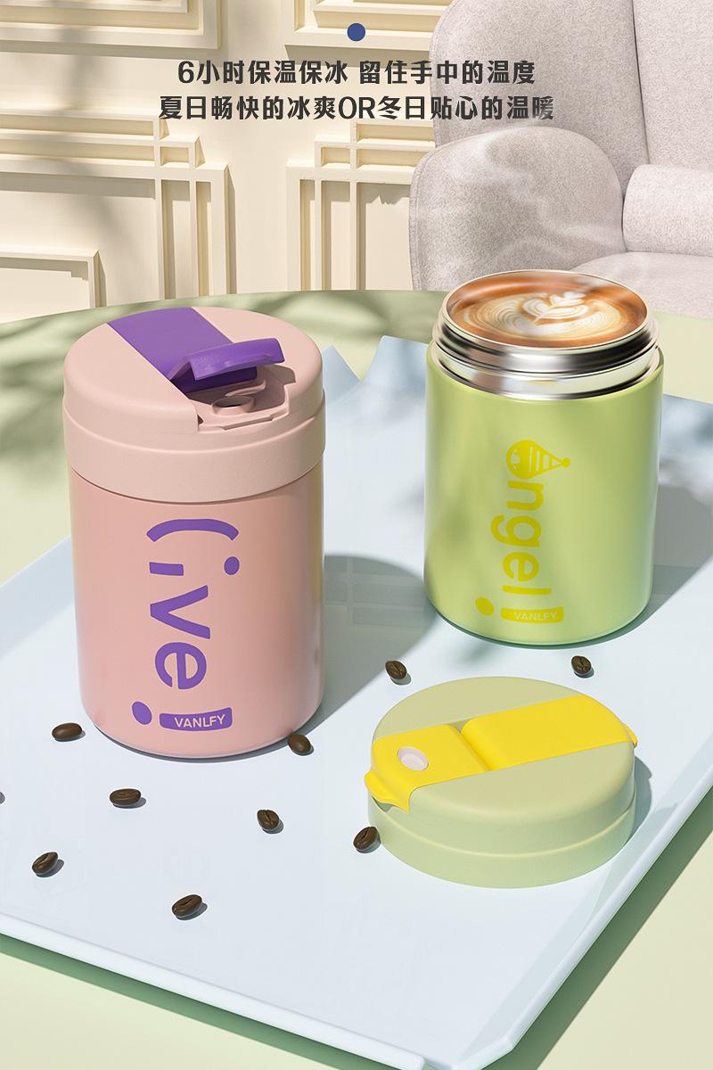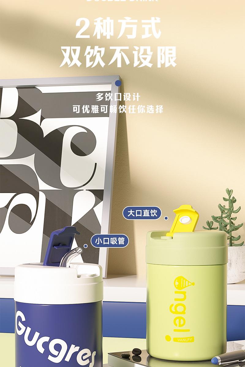 Termo para Café de Doble Bebida Ins Estilo Simple para Niñas Taza con Pajita Acero Inoxidable 316 Vaso Portátil Regalo de Vacaciones