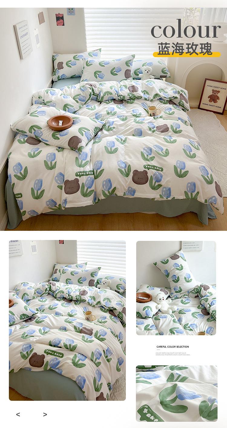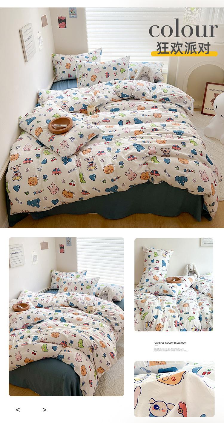 Categoría A Grado Materno e Infantil ins Juego de Cuatro Piezas para Dormir Desnudo Algodón Lavado Fresco Sábanas Funda Nórdica Sábanas Algodón Puro Juego de Tres Piezas para Dormitorio