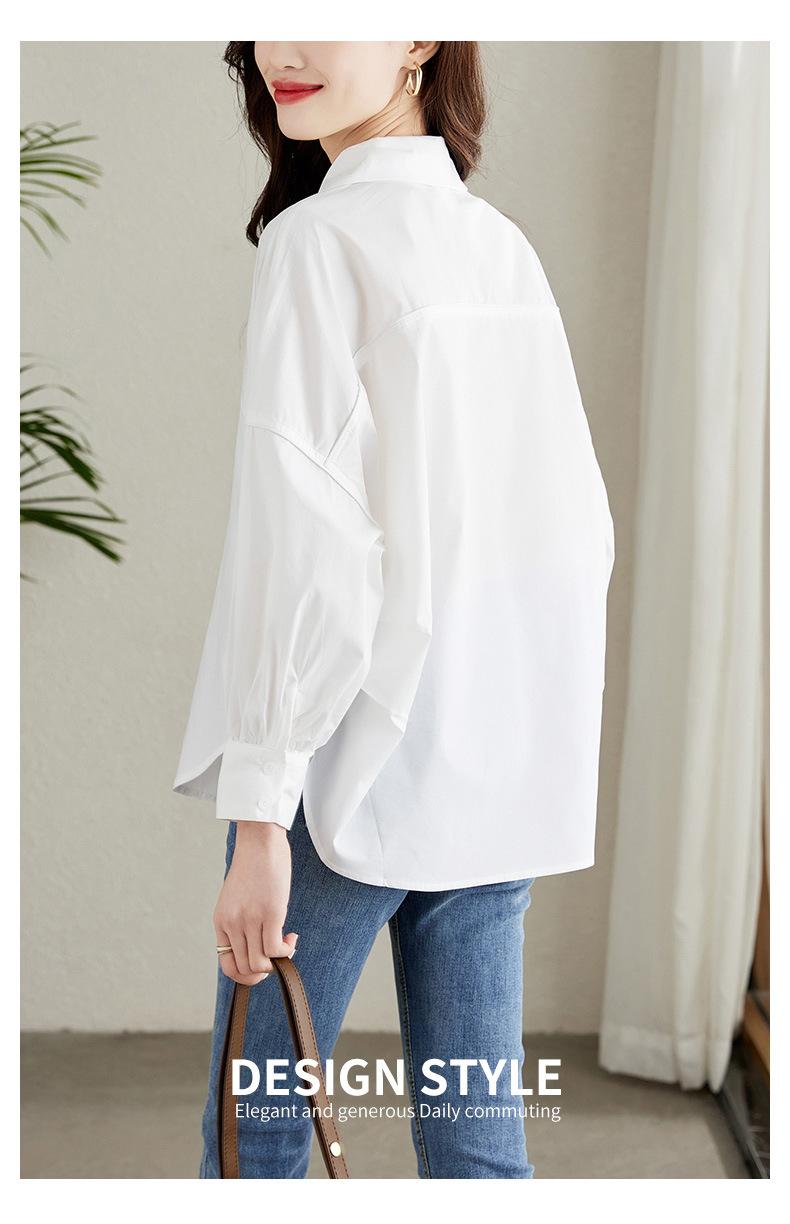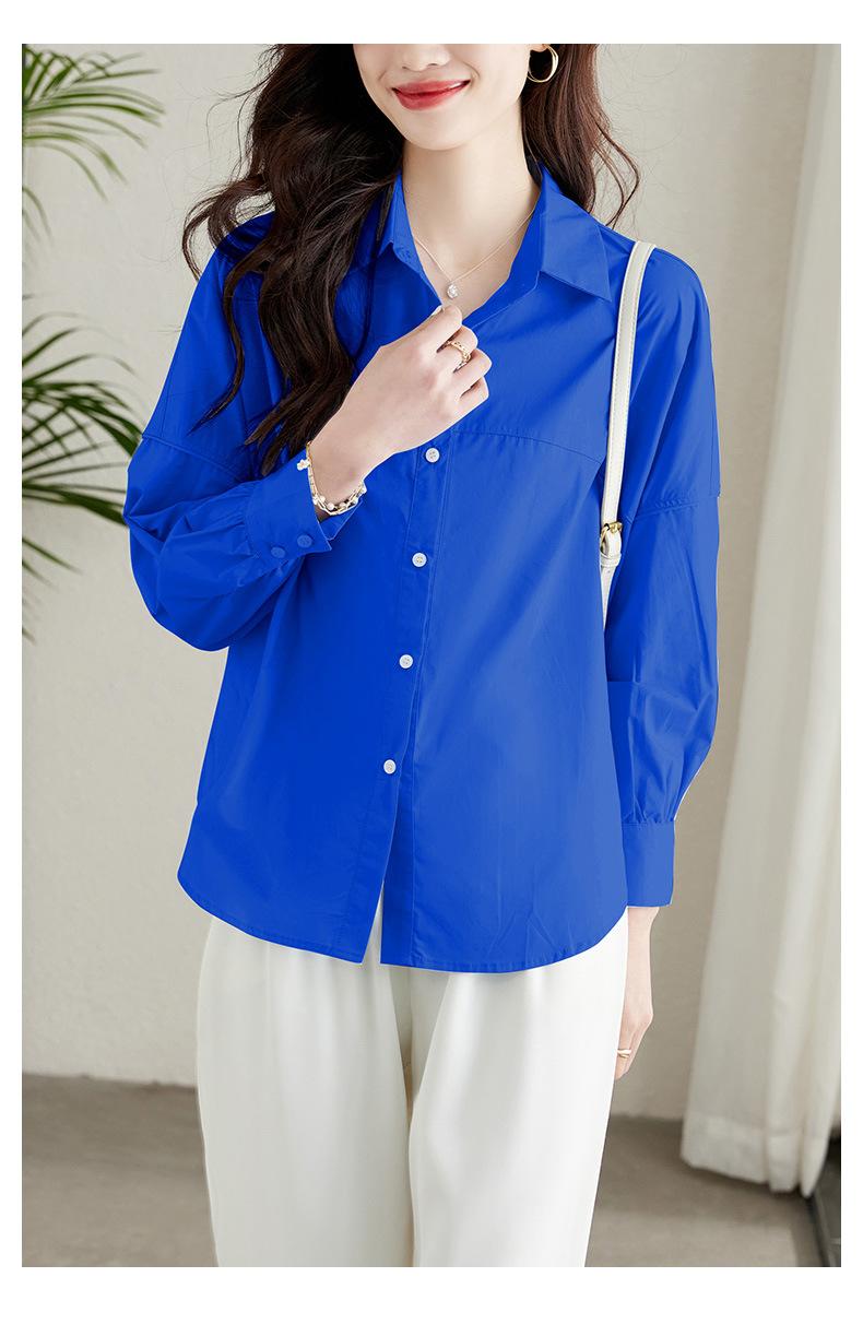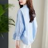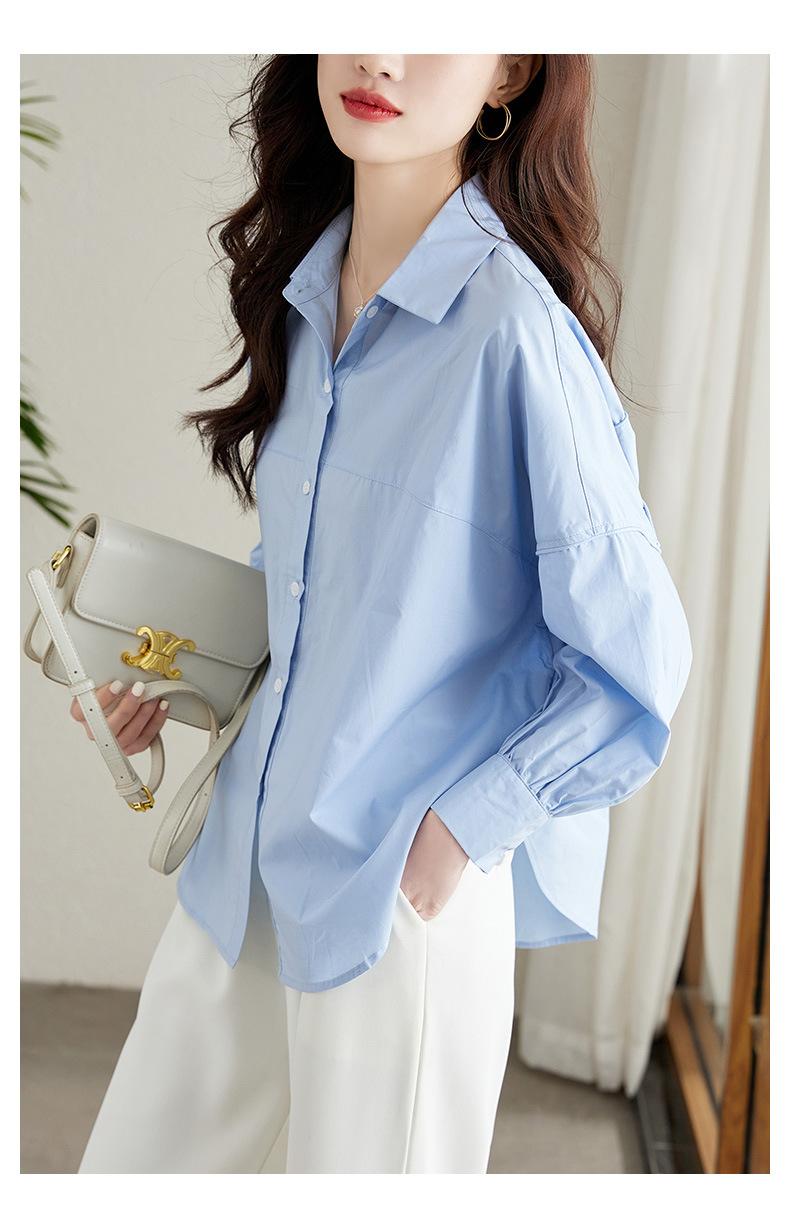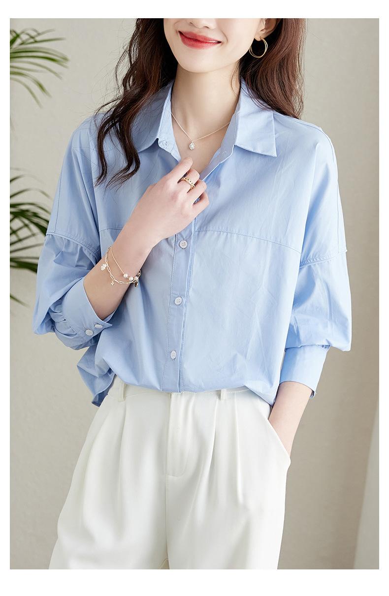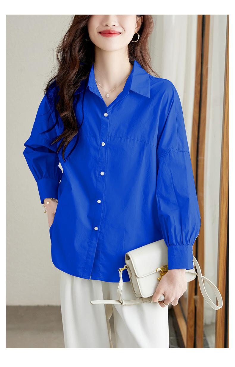 [Personalizado] Camisa de Diseño de Manga Farol Azul para Mujer Manga Larga Holgada Casual Top Camisa Chic de Moda