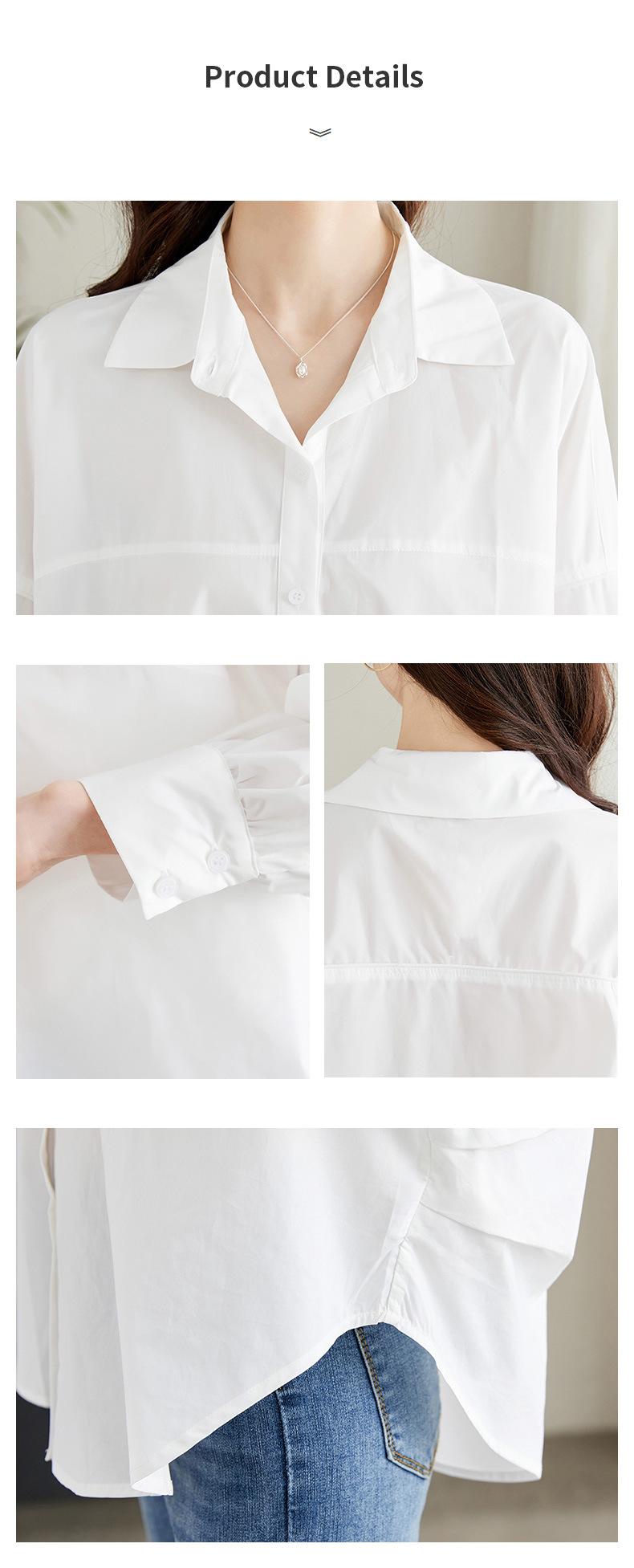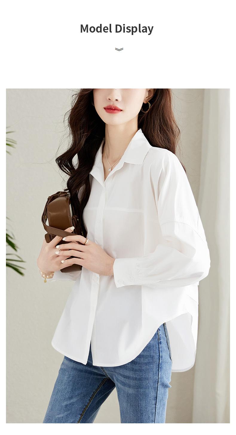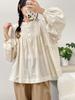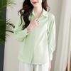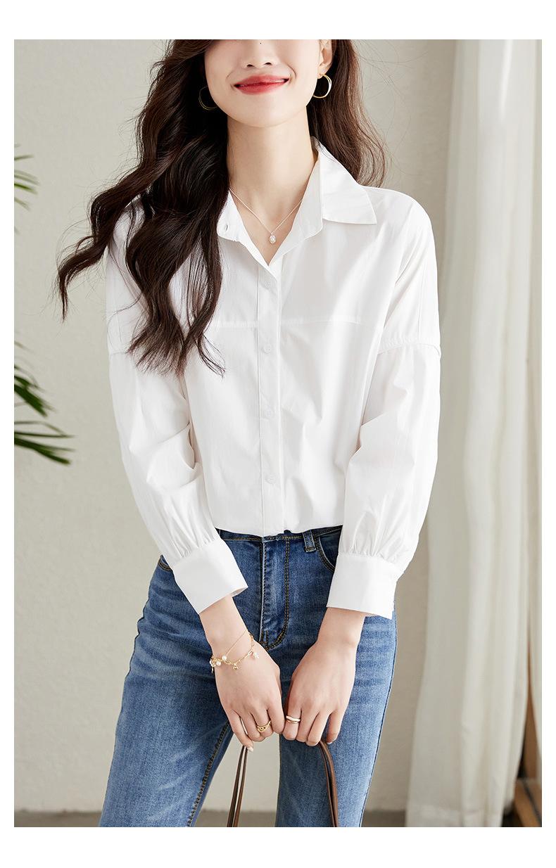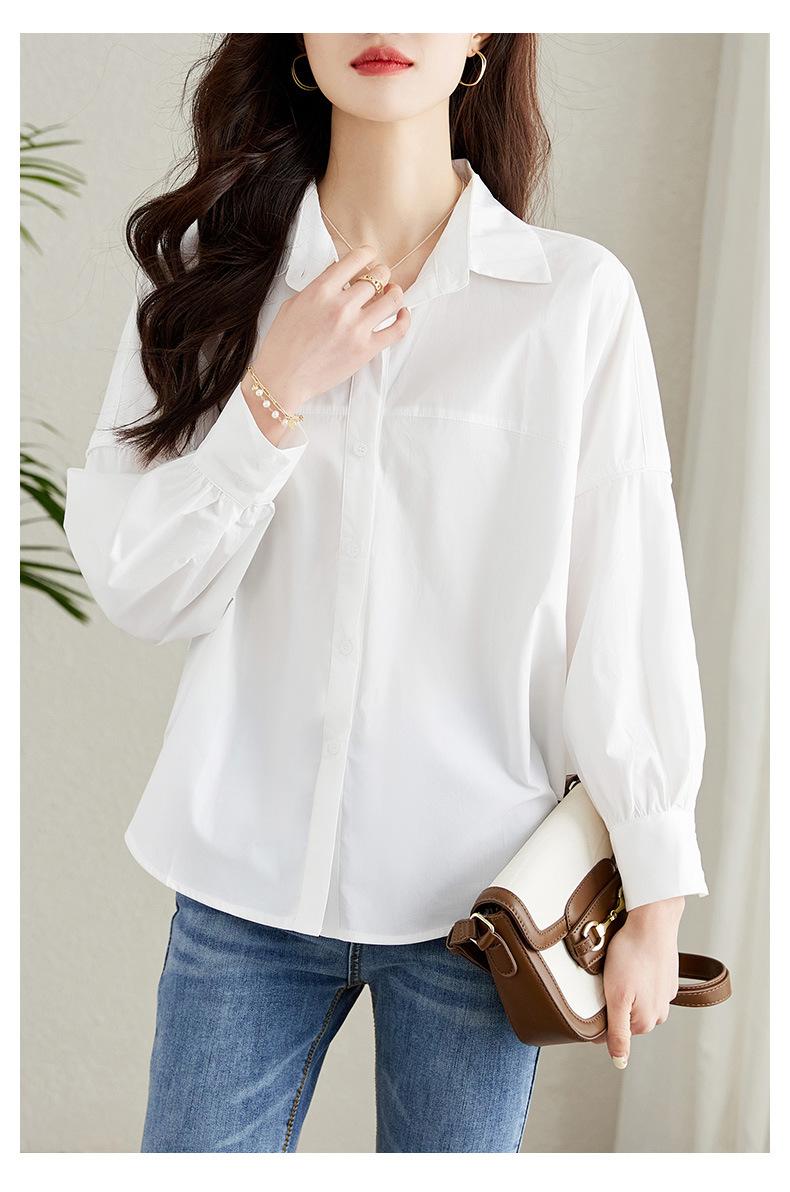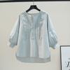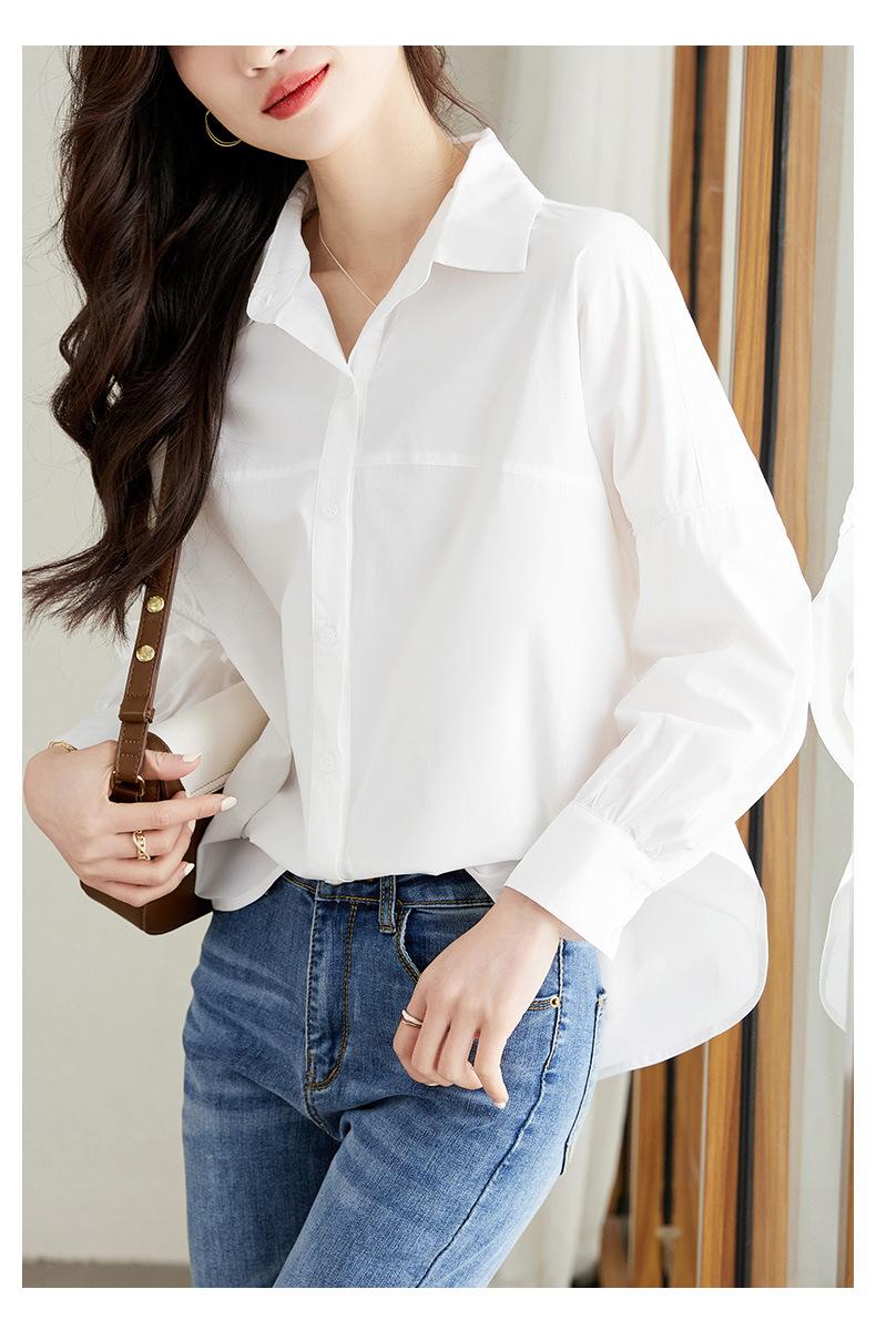 [Personalizado] Camisa de Diseño de Manga Farol Azul para Mujer Manga Larga Holgada Casual Top Camisa Chic de Moda